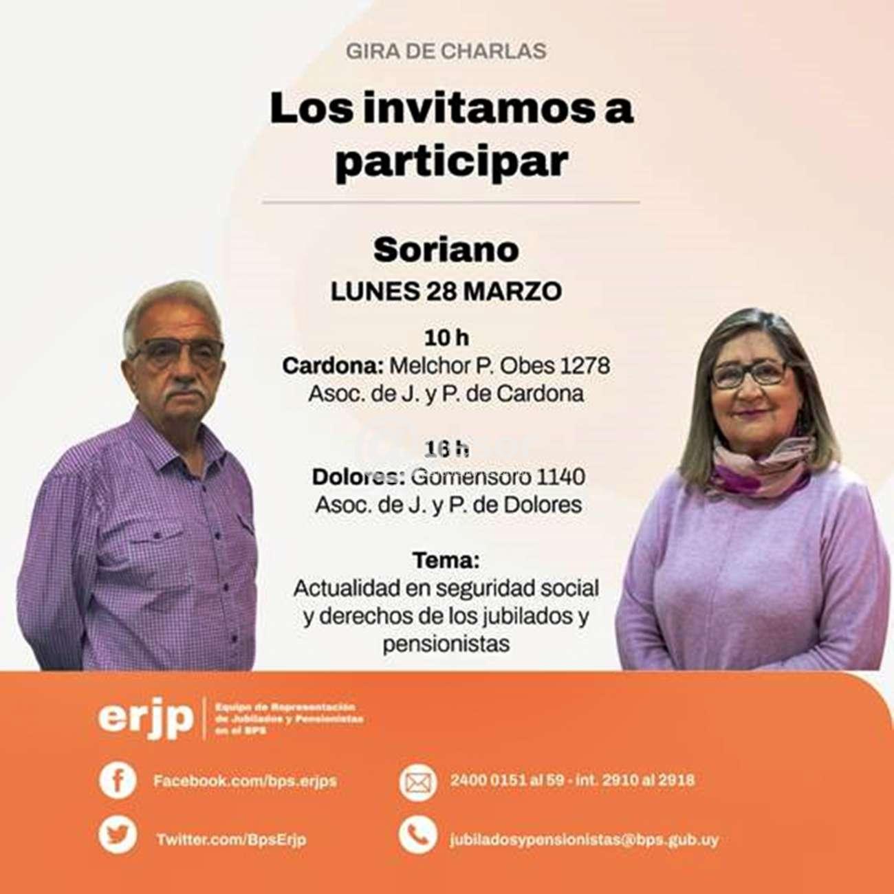 A las 16.00 horas en Dolores en Gomensoro 1140 en la Asociación de Jubilados y Pensionistas de Dolores.