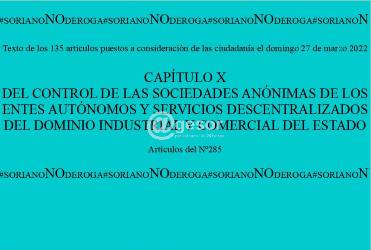 En esta nota como aporte a la ciudadanía, desde el Comando de #SorianoNOderoga continuamos informando sobre el texto que contienen los 135 artículos de la Ley de Urgente Consideración que están a consideración de la ciudadanía y que se pondrán a referéndum de ella el domingo 27 de marzo 2022. Lo que se marca en negrita es lo que se modifica o agrega.