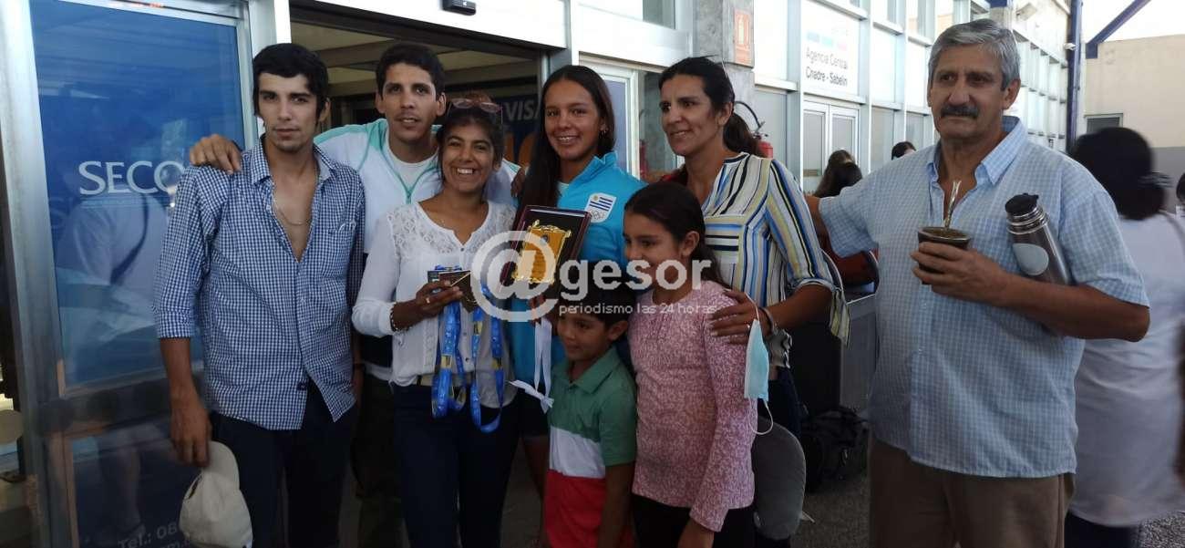 Parte de la delegación costera que vistió y defendió la celeste en el reciente Sudamericano de Remo arribó este lunes a Mercedes, viviéndose momentos de mucha emoción por parte de todos.