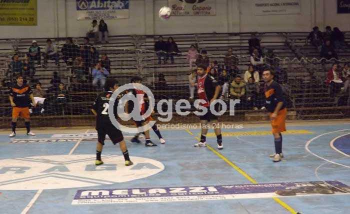 FOTO: Nicolás Castromán y Jonathan Maneiro, integrantes del plantel de Alerta Naranja, uno de los grandes animadores del certamen de futsal. Castromán festejó doble este jueves, porque era su cumpleaños.