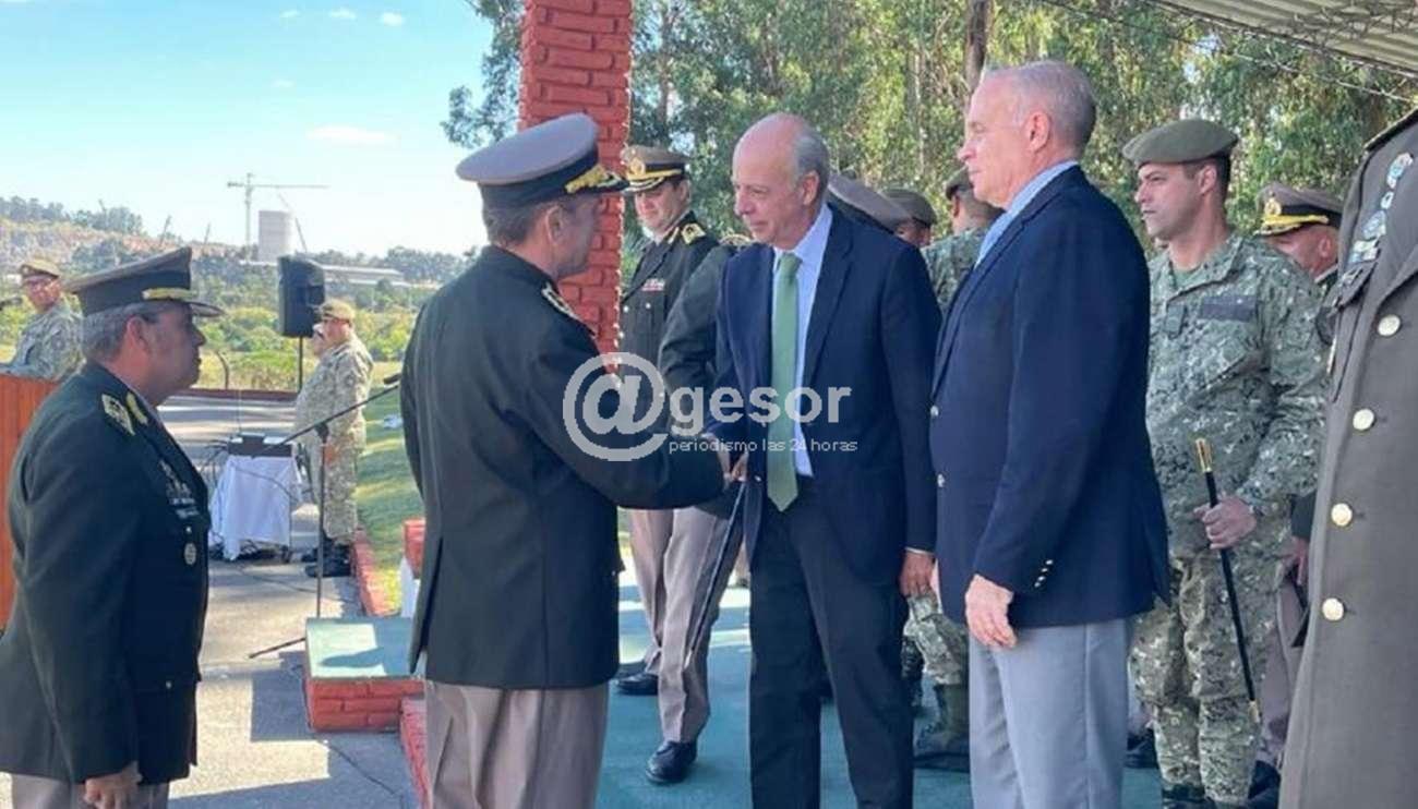 El ministro García junto al subsecretario Rivera Elgue y el comandante del Ejército, Gral. Gerardo Fregossi, participaron en el acto de asunción del Gral. Carlos Rombys como comandante de la División de Ejército IV, con sede en la ciudad de Minas, y que abarca toda la zona este del país.