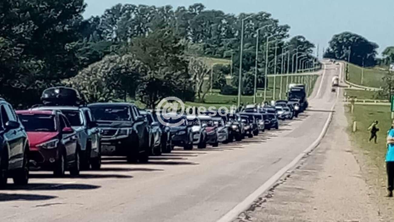 La situación se da producto de las demoras en los trámites migratorios en el puente internacional San Martín, en aquellos vehículos que buscan cruzar a Argentina. La mayoría de los vehículos que pretenden salir del país son uruguayos.