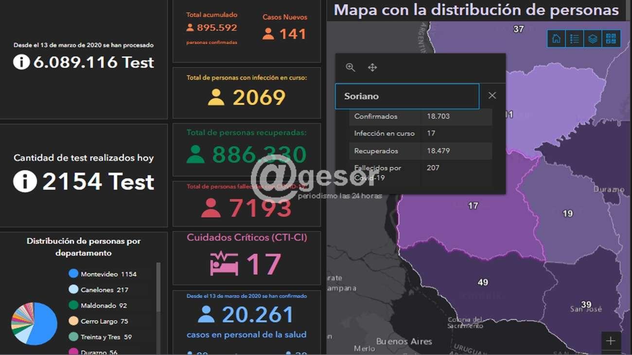 Este sábado Soriano tiene 17 casos activos de Covid-19 y decir un paciente menos que en la jornada anterior. Además en esta jornada no se registraron casos nuevos.