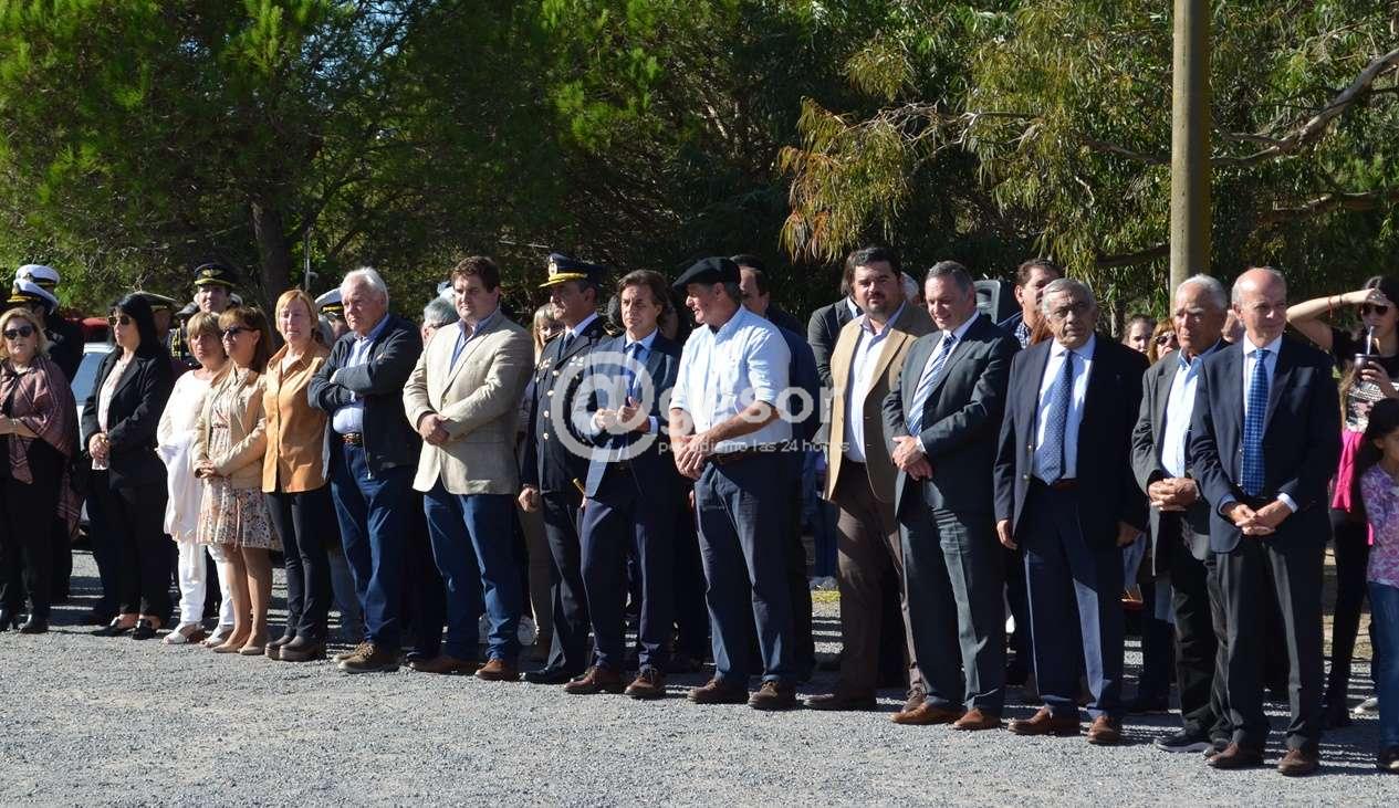 Agraciada (por Aldo Difilippo). En el marco del aniversario del Desembarco de los 33 Orientales en Playa de la Agraciada este martes 19 de abril, se hizo presente en el lugar el Presidente de la República Dr. Luis Lacalle Pou, acompañado entre otros por el Secretario de la Presidencia Dr. Alvaro Delgado, el Ministro de Defensa Nacional Dr. Javier García, quienes fueron recibidos por el Intendente de Soriano, Guillermo Besozzi,, Intendentes de Río Negro Dr. Omar Lafluf, y de Paysandú Nicolás Olivera, el Presidente de la Junta Departamental Cr. Gastón Formiliano, los Diputados María Fajardo, Enzo Malán y Martín Melazzi, Alcaldes Joaquín Gómez (Dolores), Washington Loitey (Rodó), ediles departamentales de las tres bancadas y concejales, integrantes de la Asociación Patriotica de Soriano, entre otras autoridades civiles y militares, así como escolares de la zona..