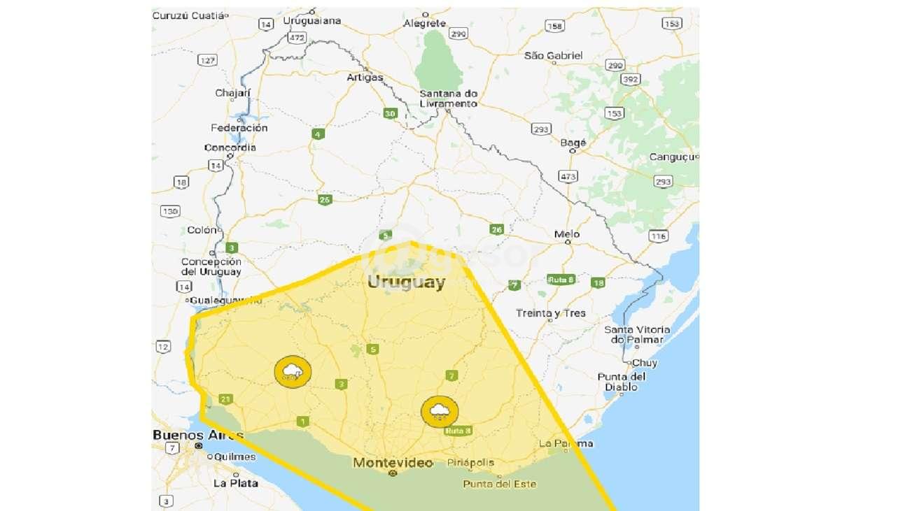 Inmet informa de la probabilidad de tormentas y lluvias puntualmente fuertes para esta zona del país. Un fenómeno climático que se extenderá hasta cerca del mediodía.