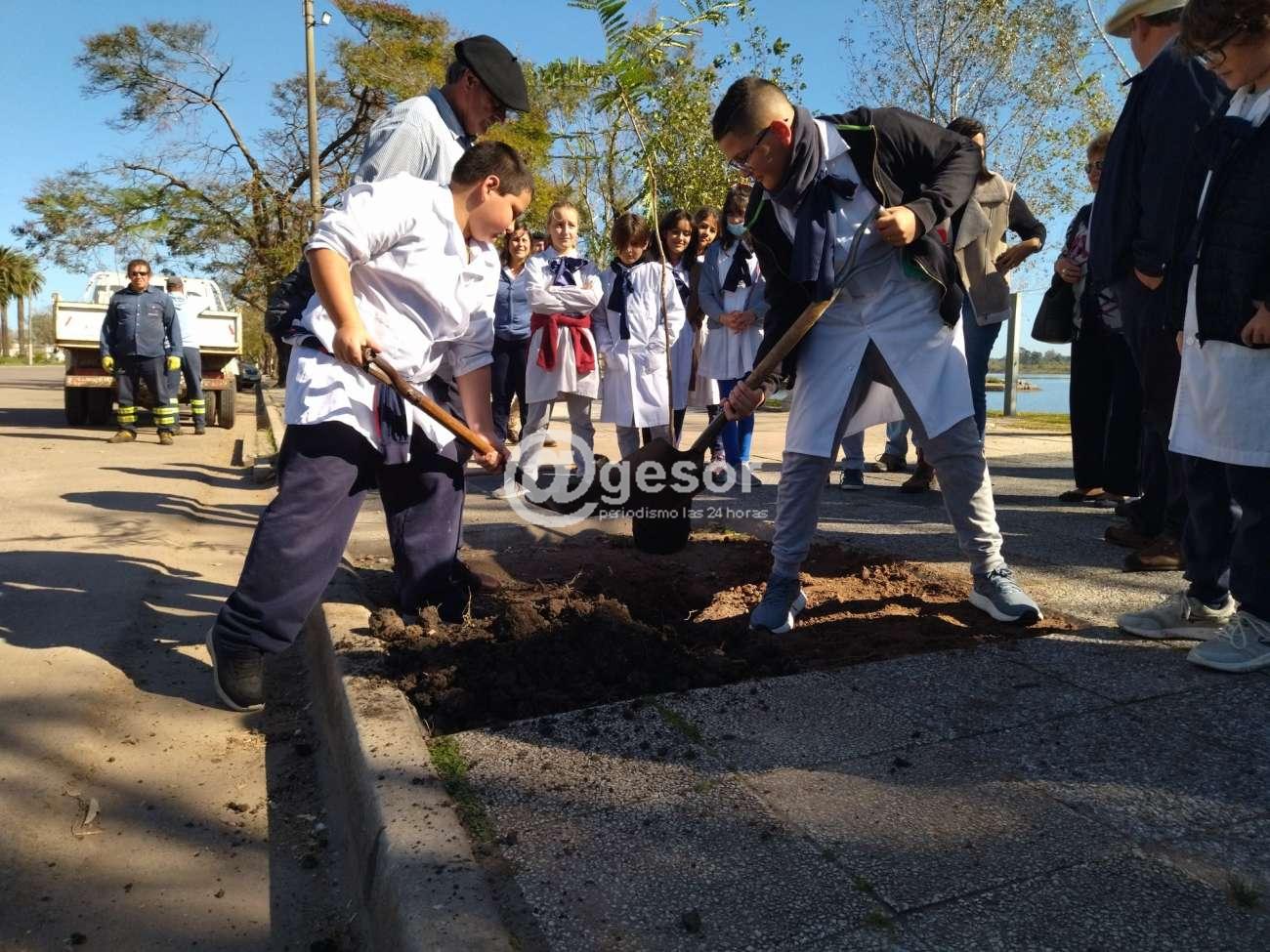 Mientras tanto, el intendente Besozzi dijo que “... hay que generar cultura ambiental, por eso se invitó a escolares para participar de la plantación.”