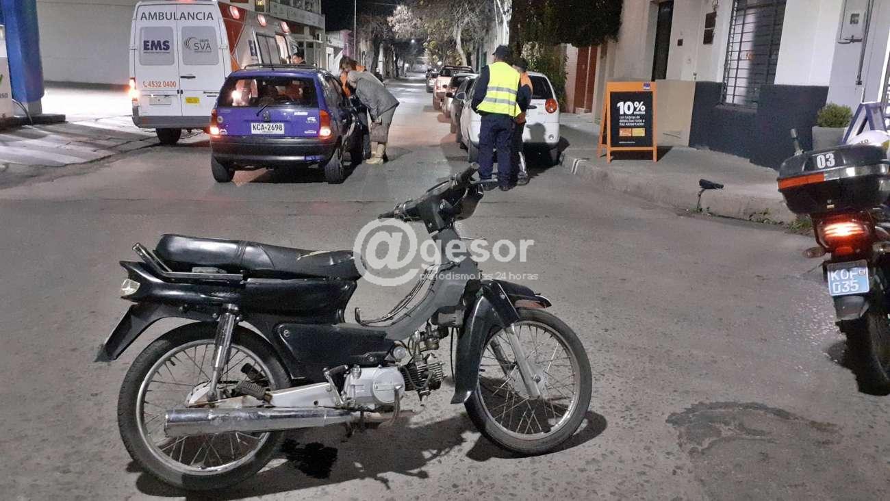 Próximo a las 19.30 horas de este miércoles se produjo siniestro de tránsito en el que fueron partícipes una moto y un auto.