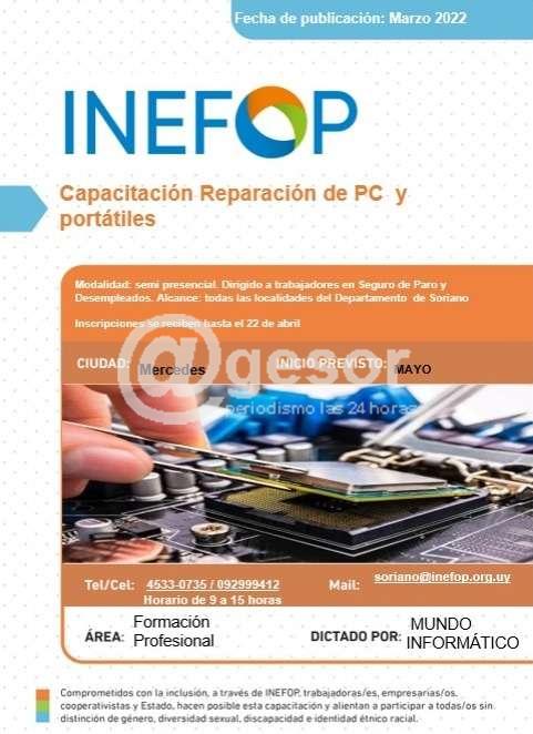 Por más información en: al 092 999 412 WhatsApp o al Tel. 4533 07 35 o través del links: https://oportunidades.inefop.org.uy/index.php/cursos/?yith_wcan=1&filter_alcance=soriano&query_type_alcance=or