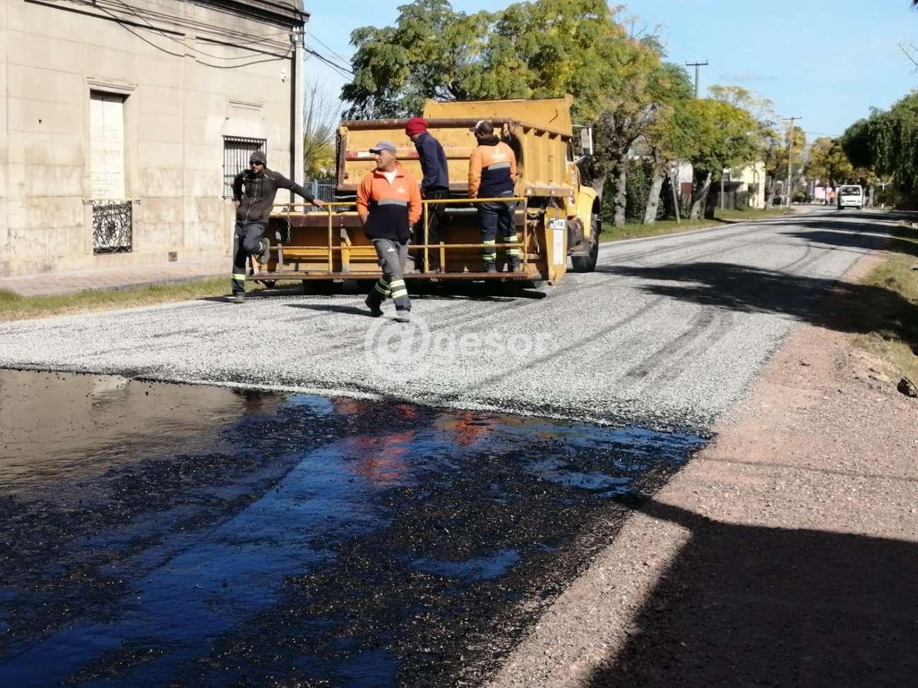 Todas las tareas están a cargo del Dpto. de Obras de la Intendencia y demandaron un intenso despliegue de personal y maquinaria para trabajos que incluyeron la recomposición de la base granular y aplicación de asfalto con gravilla.