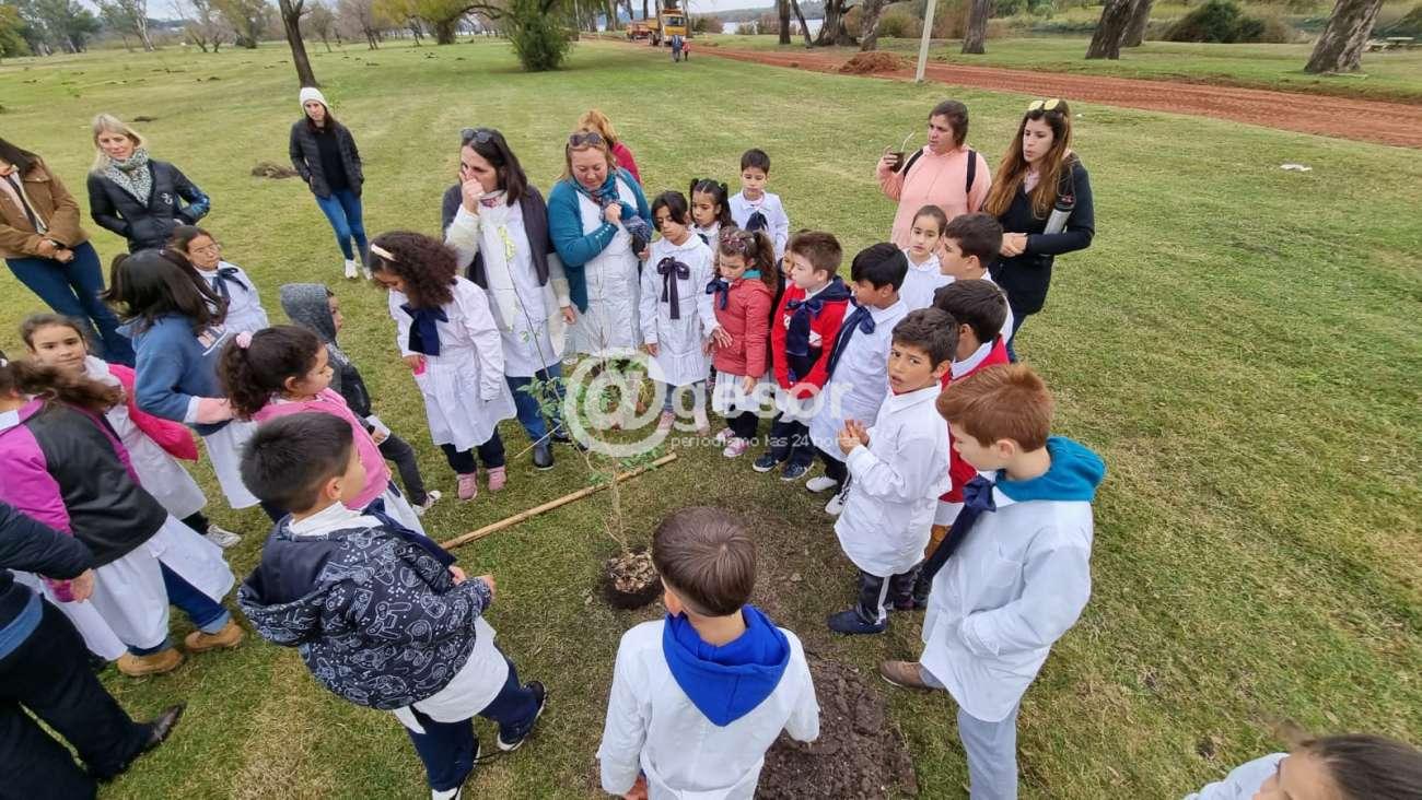 Los 36 ejemplares provenientes del vivero de la Comisión Administradora del Río Uruguay (CARU) fueron plantados por vecinos y por escolares que se inscribieron oportunamente en el marco de una campaña realizada desde la página web de la Intendencia.