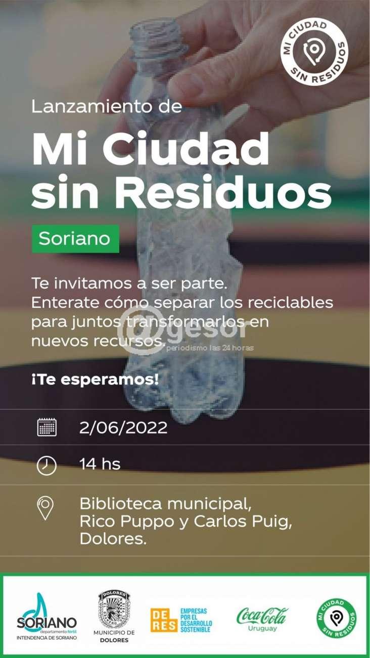 El 2 de junio a las 14.00 horas en el Centro Cultural Nacional (Puig esquina Rico Puppo) de Dolores, se realizará el lanzamiento de un proyecto denominado "Mi ciudad sin residuos", entre empresas por el desarrollo sostenible y la Intendencia de Soriano.