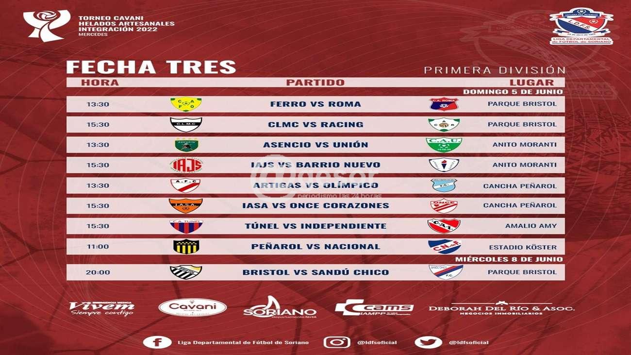 La Liga de Fútbol de Soriano fijó los detales de los partidos correspondientes a la 3era. fecha de primera división.