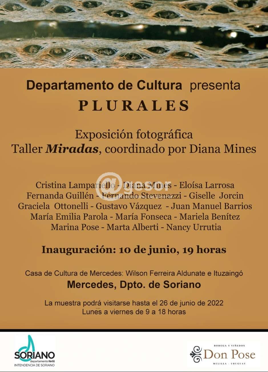 Este viernes 10 de junio a las 19.00 horas en Casa de la Cultura de Mercedes, estará inaugurándose la exposición denominada "Plurales", del taller de fotografía "Miradas", coordinado por Diana Mines.