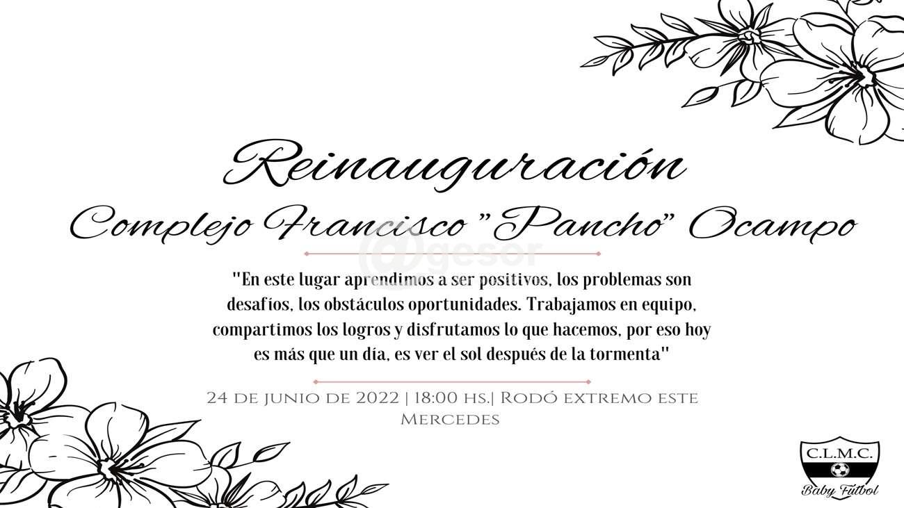 Este viernes 24 de junio se reinauguran las instalaciones del complejo Francisco “Pancho” Ocampo del club Con los Mismos Colores. Es por eso que la Comisión de baby fútbol de la institución viene organizando este evento. Acompañando la invitación con una frase que refleja el espíritu de este grupo de trabajo: “En este lugar aprendimos a ser positivos, los problemas son desafíos, los obstáculos oportunidades. Trabajamos en equipo, compartimos los logros y disfrutamos lo que hacemos, por eso hoy es más que un día, es ver el sol después de la tormenta”.