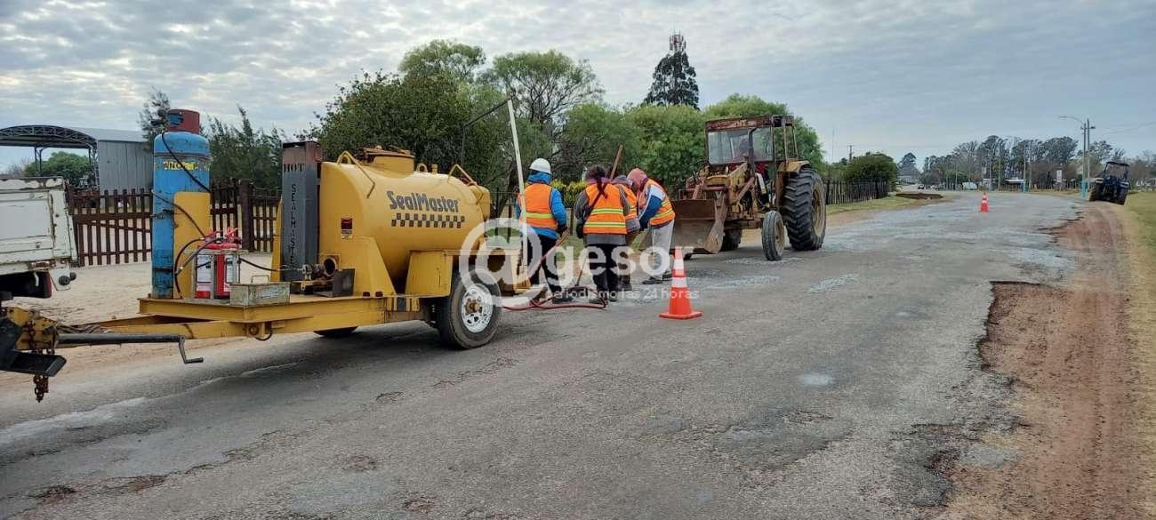 Se trata de un equipo que realiza tareas de bacheo con asfalto en caliente y gravilla, la que actualmente cumple trabajos en la localidad de Palmitas.