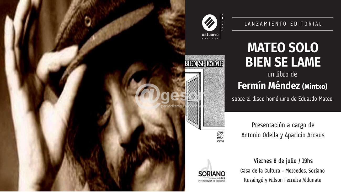 Este  viernes  8 de julio en Casa de la Cultura de Mercedes se presentará   “Mateo solo  bien se lame” un  libro de Fermín Méndez (Minxto) sobre el disco homónimo de  Eduardo Mateo.