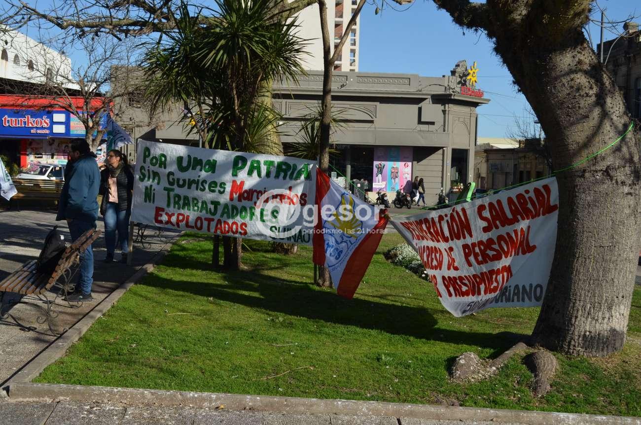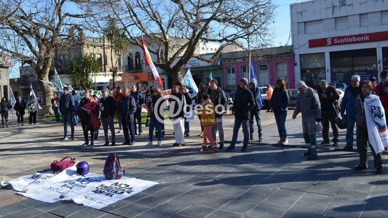 Gremios de diferentes sectores de la actividad se concregaron en Plaza Inndependencia de Mercedes en el acto del PIT CNT Soriano sumándose al paro nacional parcial.