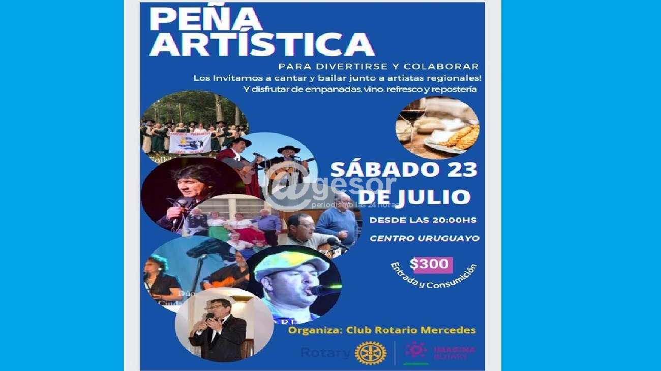 El Club Rotario Mercedes organiza una Peña Artística, en Centro Uruguayo. Será el sábado 23 de julio, comenzando a las 20 horas.