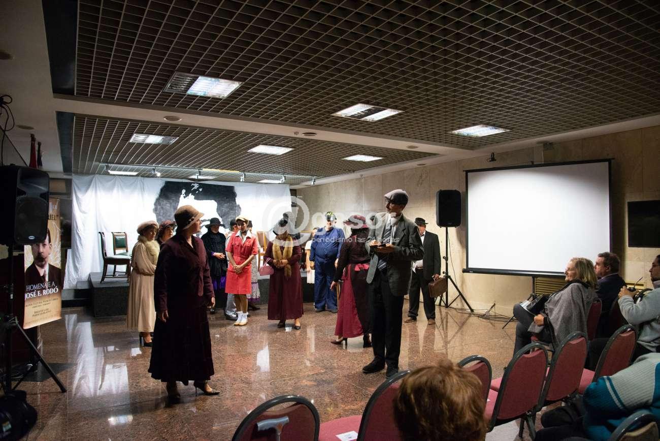 Con la presencia de la señora Presidente de la Asamblea General (interina), Dra. Graciela Bianchi, se realizó esta tarde, en la Sala Acuña de Figueroa, la obra de teatro “Entre Chapas de la Estación“, a cargo del Grupo Cultural Pueblos Libres, en homenaje a José Enrique Rodó. Esta actividad artística se desarrolló en el marco del día 15 de julio declarado como “Día de Ariel”, con motivo de conmemorarse el aniversario de su nacimiento.