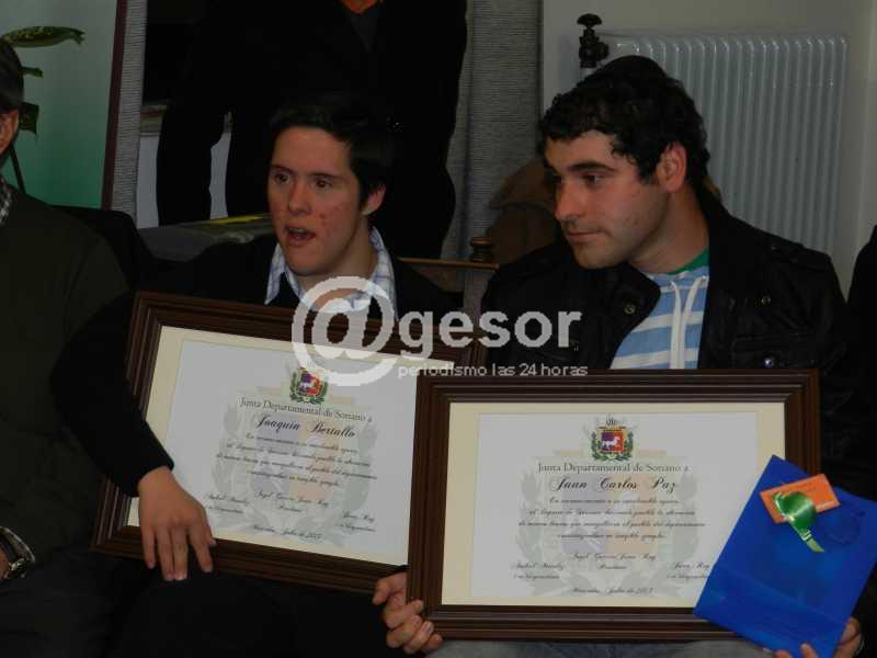 Con una sala de sesiones que nuevamente quedó chica por la presencia de quienes concurrieron a la sesión extraordinaria de la Junta Departamental de Soriano en reconocimiento a los jóvenes con capacidades diferentes, Juan Carlos Paz (Equitación) y Joaquín Bertullo (Judo), por los logros obtenidos a nivel nacional e internacional, se cumplió el merecido homenaje. Varios ediles hicieron uso de la palabra destacando aspectos de la personalidad de estos dos jóvenes y poniéndolos como ejemplos a seguir en la vida diaria, por el esfuerzo que ponen para superar las dificultades que se les presentan.