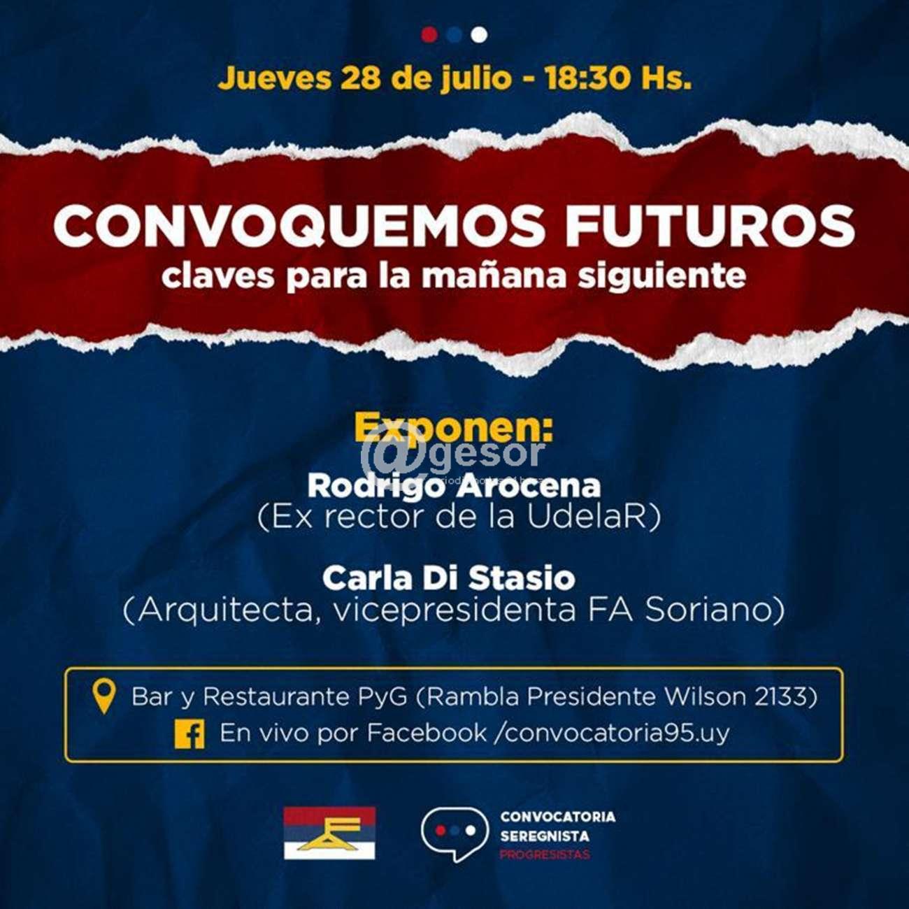 Convoquemos Futuros: Claves para la mañana siguiente, es una convocatoria para este jueves 28 a las 18.30 horas exponen Rodrigo Arocena (exDirector de la UdelaR) y Carla Di Stasio (Arquitecta, Vicepresidenta FA Soriano).