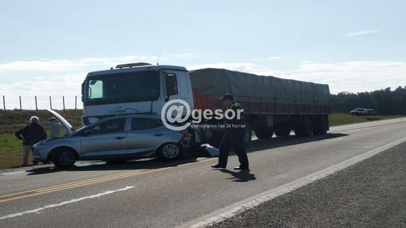 Carrasquera salió en auto de un camino vecinal para tomar la Ruta 12 no vio un camión cargado de soja que venía en dirección a Nueva Palmira, más precisamente al complejo portuario.