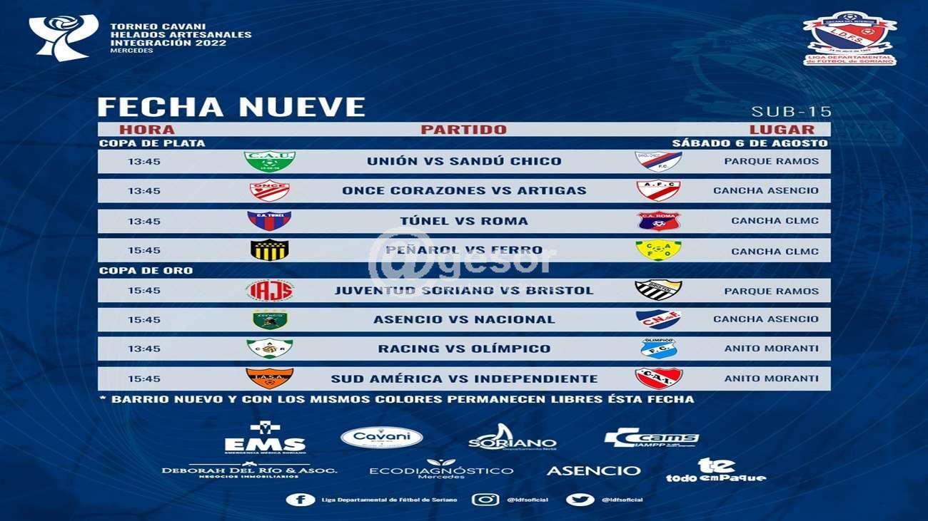 Los otros partidos de la Copa de oro son a la hora 15 y 45 y juegan Juventud Soriano vs Bristol en Parque Ramos, Asencio vs Nacional en cancha de Asencio, y Racing vs Olímpico en el Moranti.