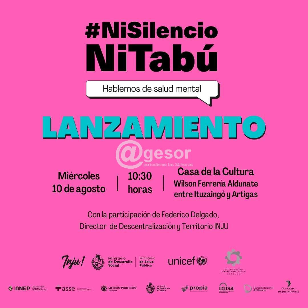 El miércoles 10 de agosto se realizará el lanzamiento a nivel departamental de la Campaña Ni Silencio Ni Tabú HABLEMOS DE SALUD MENTAL.