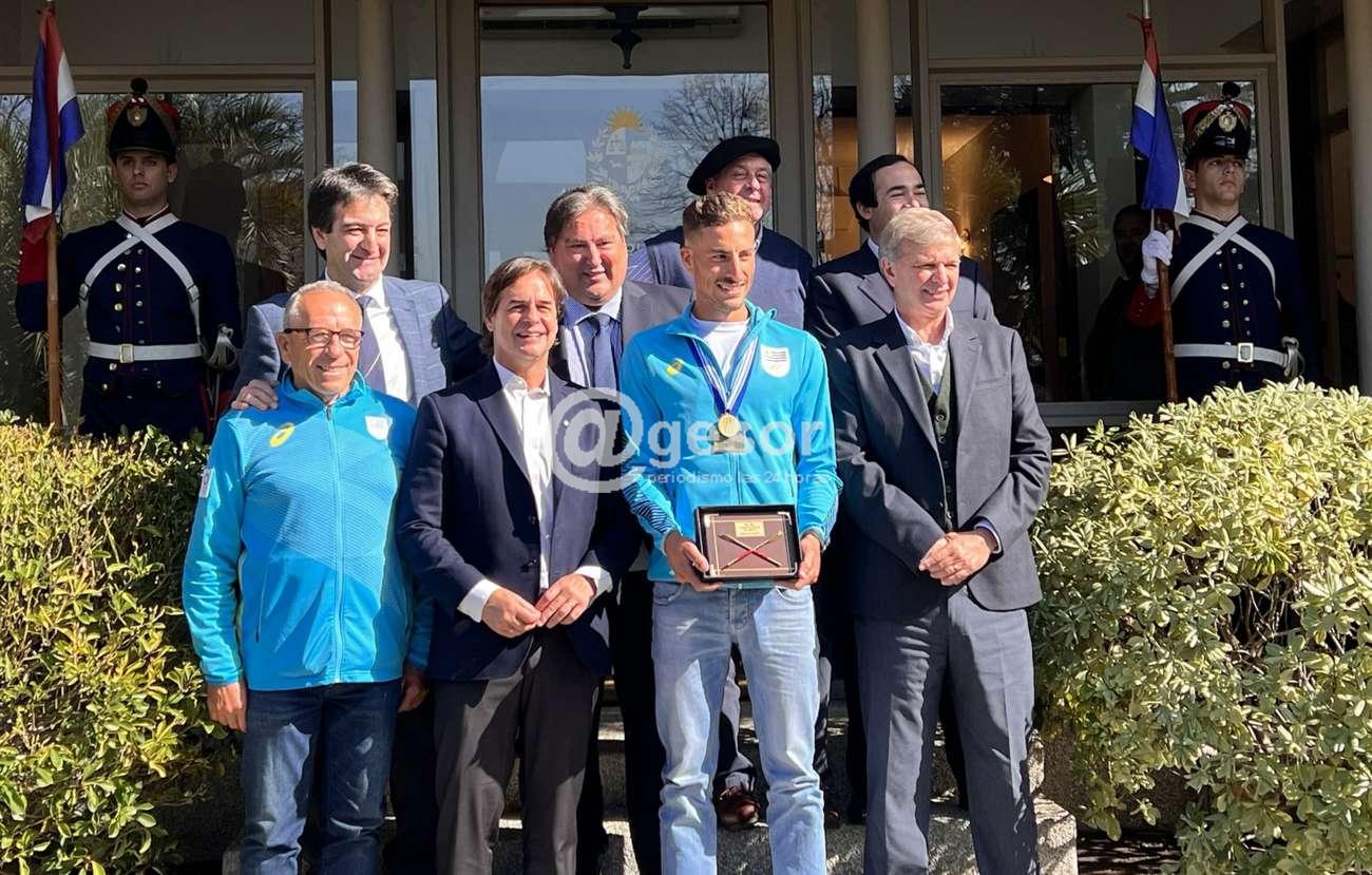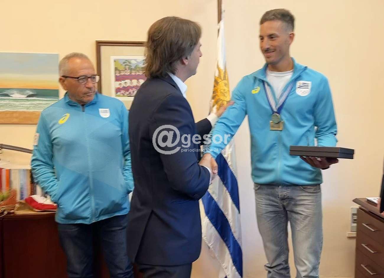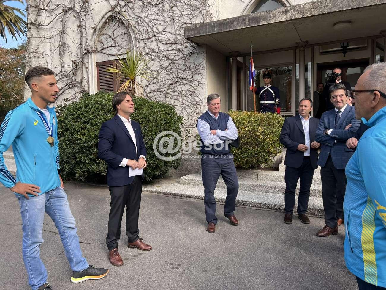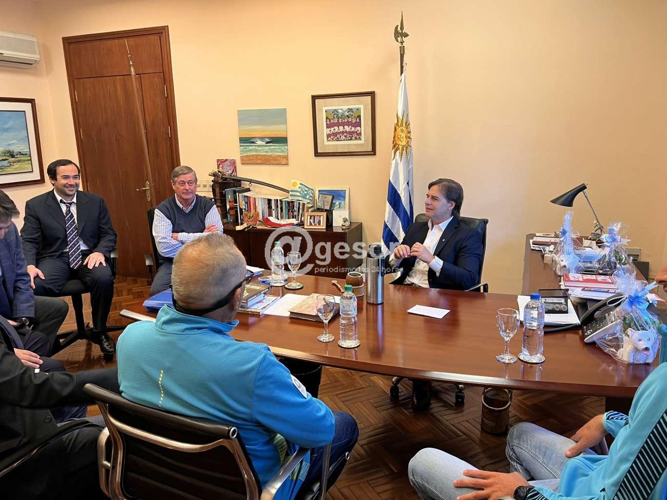 El encuentro se realizó en la Residencia Presidencial de Suárez y Reyes, y en su cuenta de Twitter Lacalle Pou escribió: "Nos reunimos con el campeón mundial de remo @felipekluver_07, una muy buena instancia para conversar sobre su experiencia en el mundial de Italia y el deporte nacional".