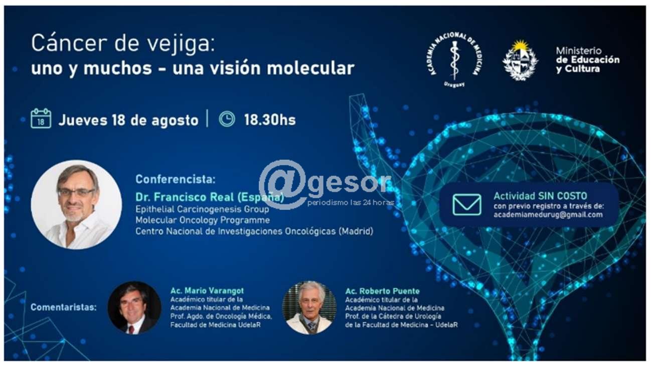 El líder del Grupo de Carcinogénesis Epitelial del Centro Nacional de Investigaciones Oncológicas de España (CNIO), Dr. Francisco Real, expondrá el próximo jueves 18 de agosto, a las 18:30, sobre el cáncer de vejiga, visto desde un punto de vista molecular, en conferencia organizada por la Academia Nacional de Medicina del Uruguay (ANM).