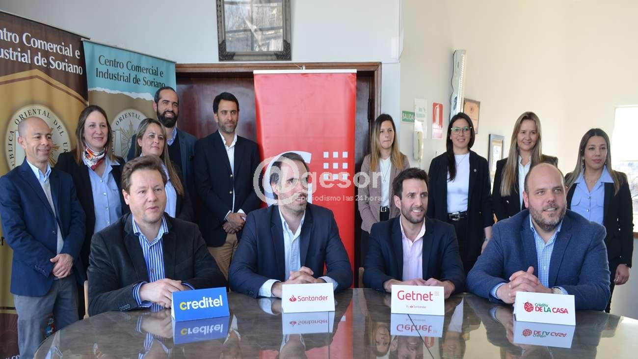 En la presentación realizada en el Centro Comercial de Soriano estuvieron presentes el gerente zonal de Banco Santander, Gastón Saxlund, Diego Scarone, gerente comercial de Getnet Uruguay, Pablo Ruiz, gerente de redes de Creditel y Pablo Pozzi gerente de redes de Crédito de la Casa.