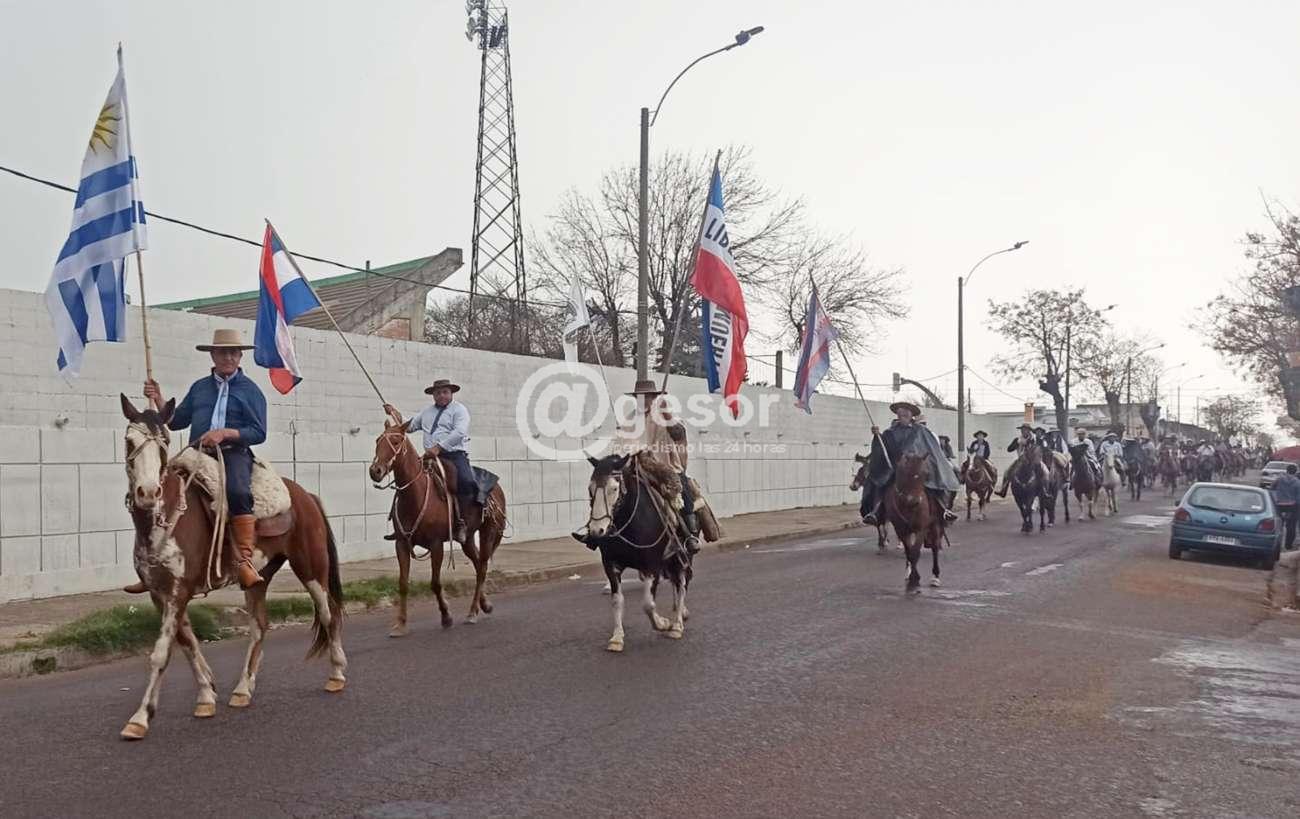 Luego de los abanderados, un simbólico desfile que marcaba una presencia en ausencia, la de Mario Viotti, integrante de la Unión de Instituciones Tradicionalistas de Soriano organizadora de esta marcha y cuanto evento relacionado con nuestras tradiciones lo tenía como firme animador, líder de su aparcería Grito de Asencio, recientemente fallecido. En el desfile, Alfredo González, su joven compañero de tantas jornadas, marchó junto al caballo "El Escondido", que fue en el montó Mario y esta vez ensillado hizo el recorrido en homenaje a Mario, marcando su presencia en ausencia de esta manera, recordándolo.