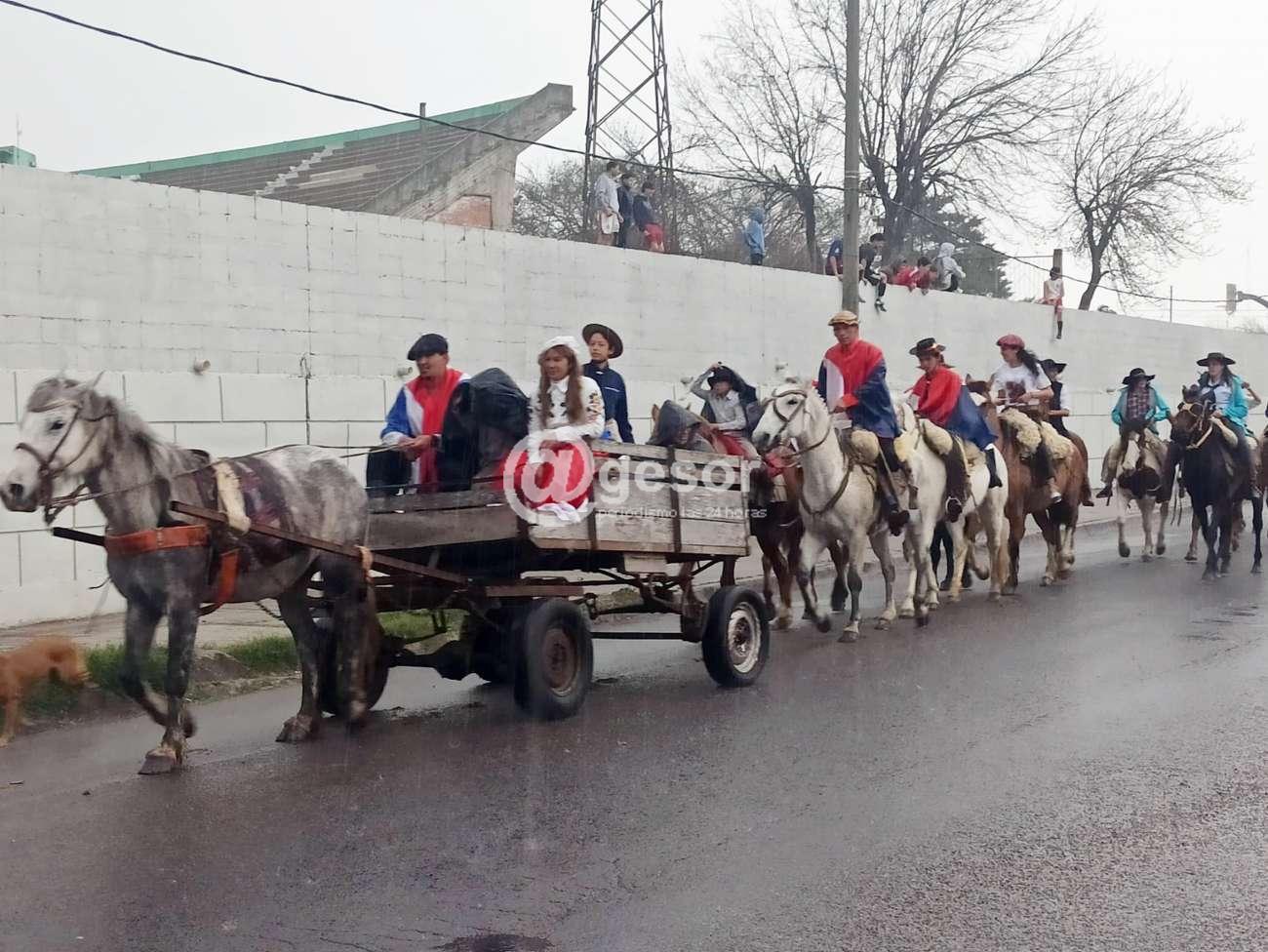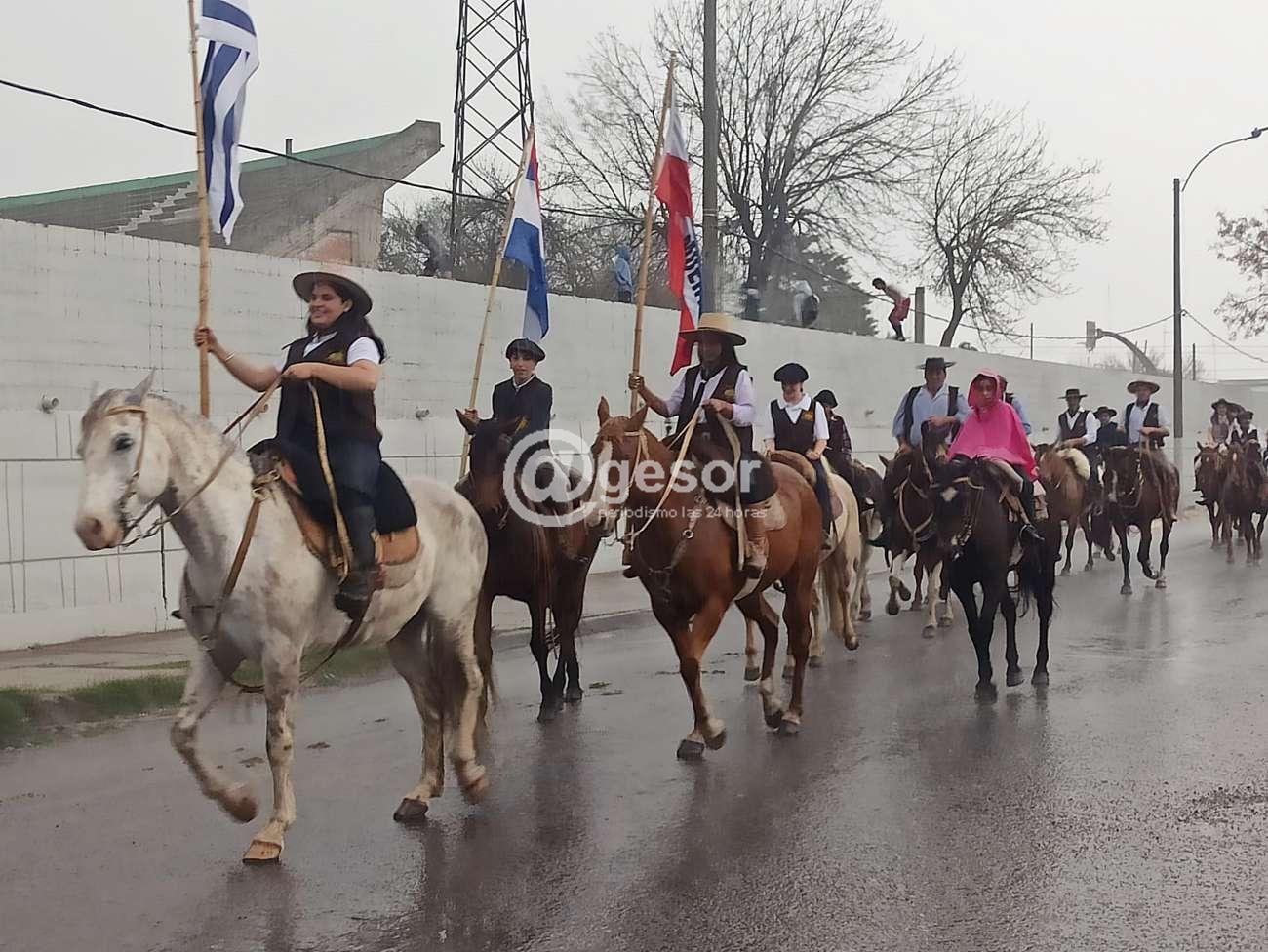 Y otro aspecto destacable de siempre, pero más ante la adversidad del momento, la cantidad de niños y niñas, que bajo la torrencial lluvia efectuaron el recorrido igualmente, cuando más arreciaba el agua, al firme el "gauchaje" homenajeó una vez más a la Patria. Salud!!!