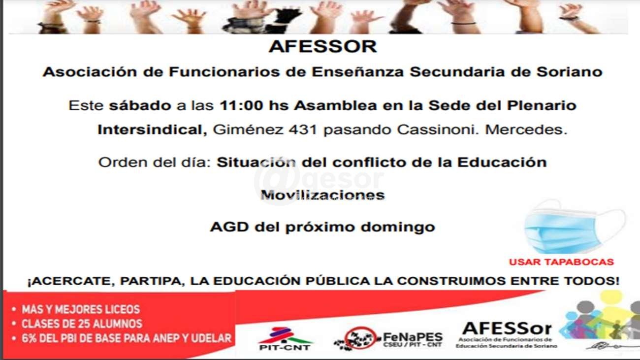 Este sábado a las 11:00 hs Asamblea en la Sede del Plenario Intersindical, Giménez 431 pasando Cassinoni. Mercedes.