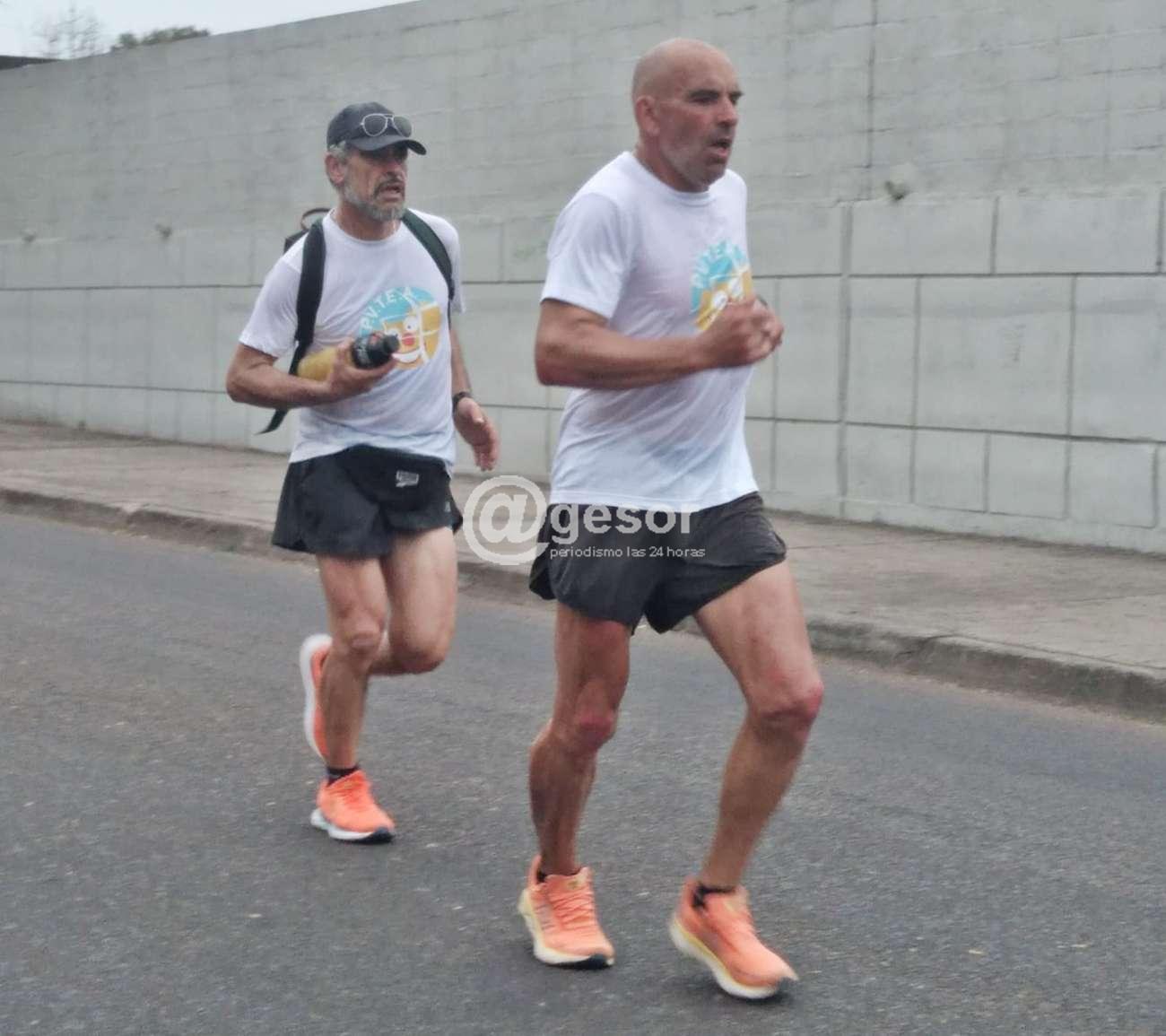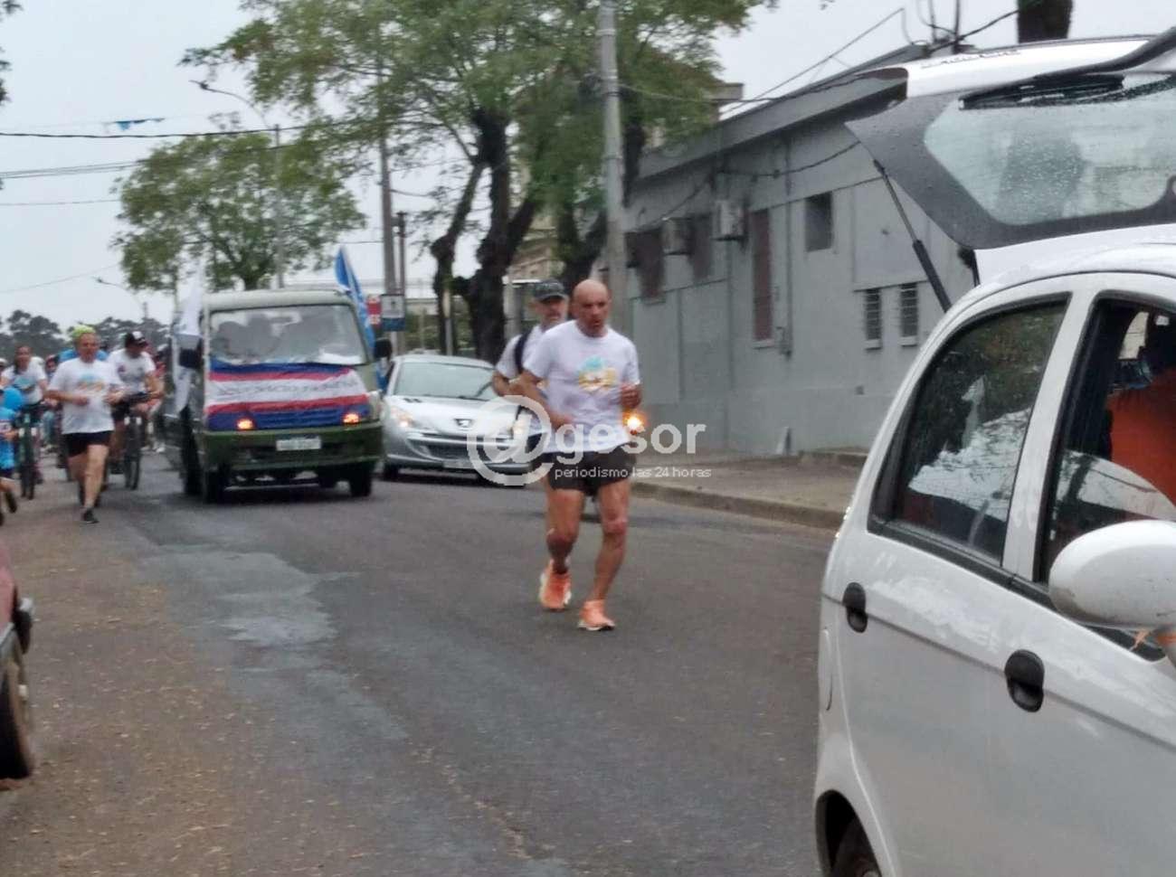 Registramos el pasaje de Rodney Cuestas por avda. Fregeiro en los últimos metros dentro de la ciudad de Mercedes de la Ultramaratón que durante tres días realizó en apoyo de la asociación Pequeños Valientes del Trastorno del Espectro Autista (PVTEA)