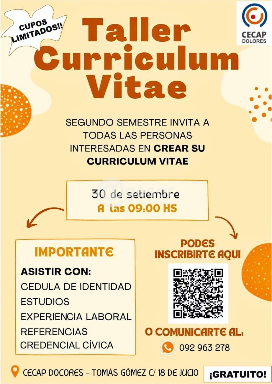 CECAP Dolores organiza taller sobre Curriculumm Vitae este 30 de setiembre a las 9.00 horas.