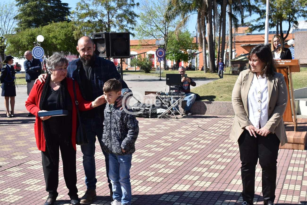 Tal es así que se entregaron plaquetas a las familias de Julio De Biasse y Milton Campos, directores de la orquesta "Mercedes" y del Conservatorio Municipal de Música, respectivamente; y de Mario Humberto Viotti, referente de la Unión de Instituciones Tradicionalistas de Soriano.