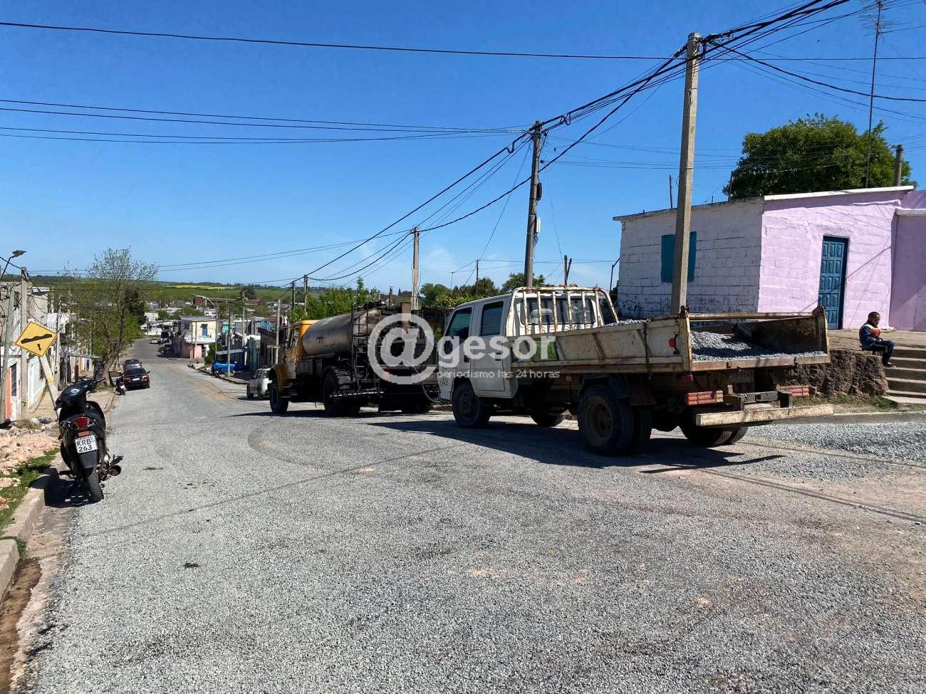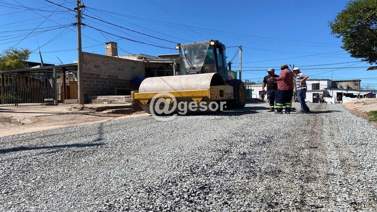 Paralelamente se sigue trabajando en la preparación de la base granular en otras calles del barrio, tareas a cargo del Dpto. de Obras de la comuna, que generan un intenso movimiento de maquinaria vial y personal.