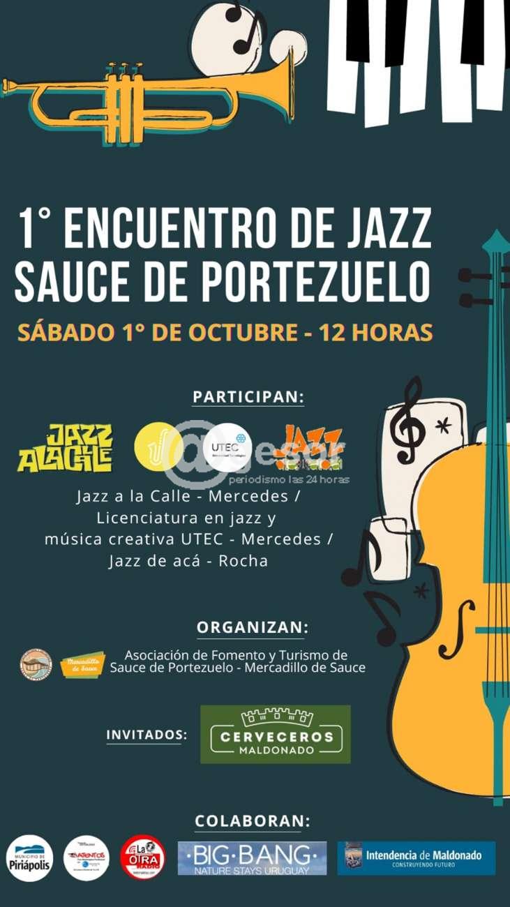 Este sábado 1 de octubre a partir de las 12.00 horas, con la organización de la Asociación de Fomento y Turismo de Sauce de Portezuelo y Mercadillo de Sauce, se lleva a cabo el Primer Encuentro de Jazz Sauce de Portezuelo con la participación del Movimiento Jazz a la Calle de Mercedes y la Licenciatura en Jazz y Música Creativa de la UTEC Mercedes, además del grupo Jazz de Acá de Rocha.