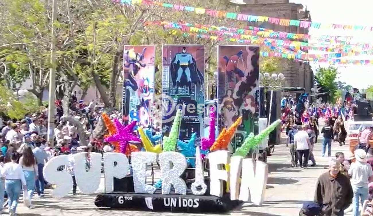 La carroza que cerró el desfile de la 60ª Fiesta Nacional de la Primavera en Dolores, con el Nº 10 es la de Sextos Unidos del Liceo Nº 1 "Dr. Roberto Taruselli", denominada "Súper! Fin" que presentó como Princesas aspirantes a Reina a: Martina Amondarain y Virginia Solano.