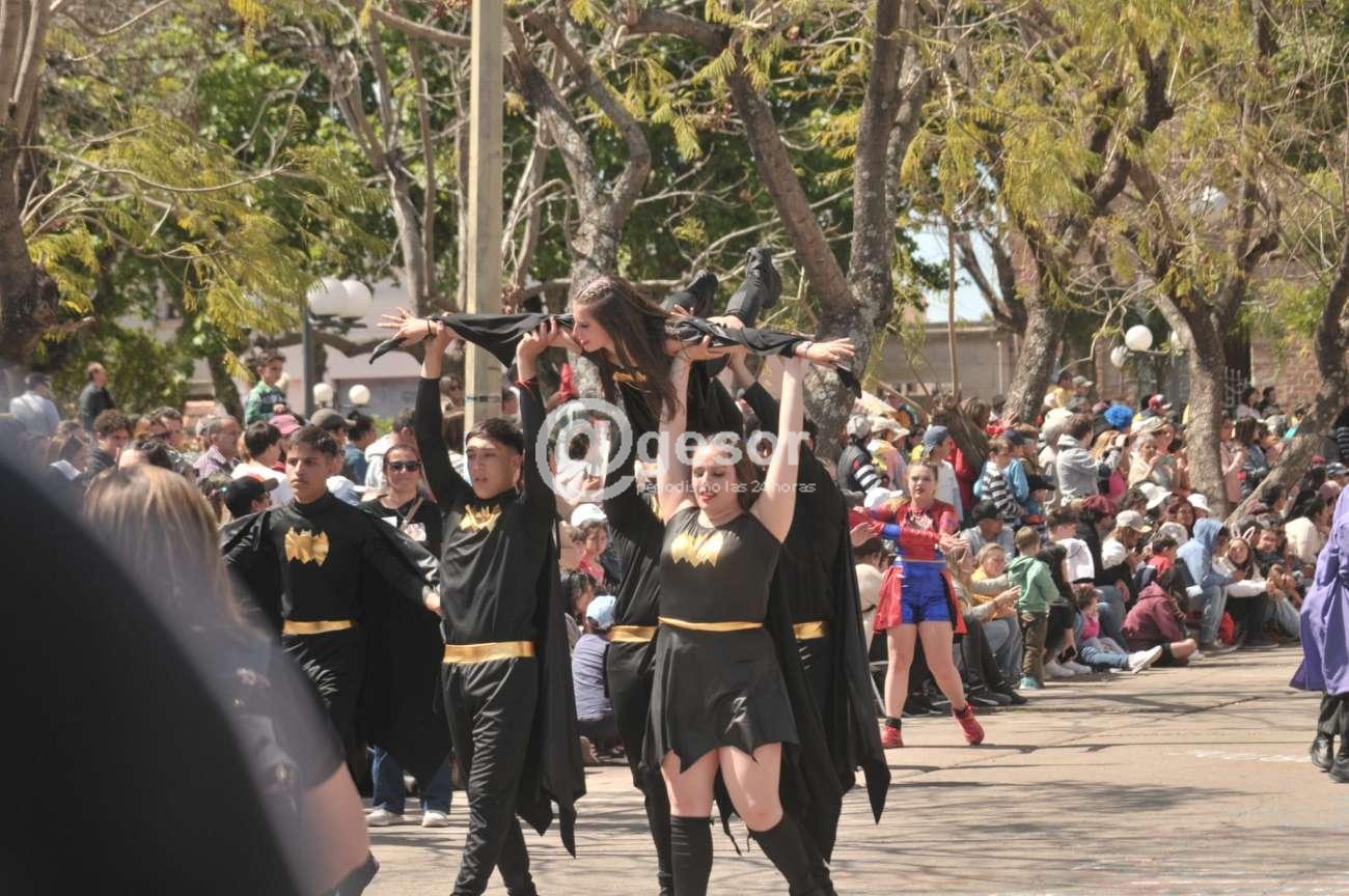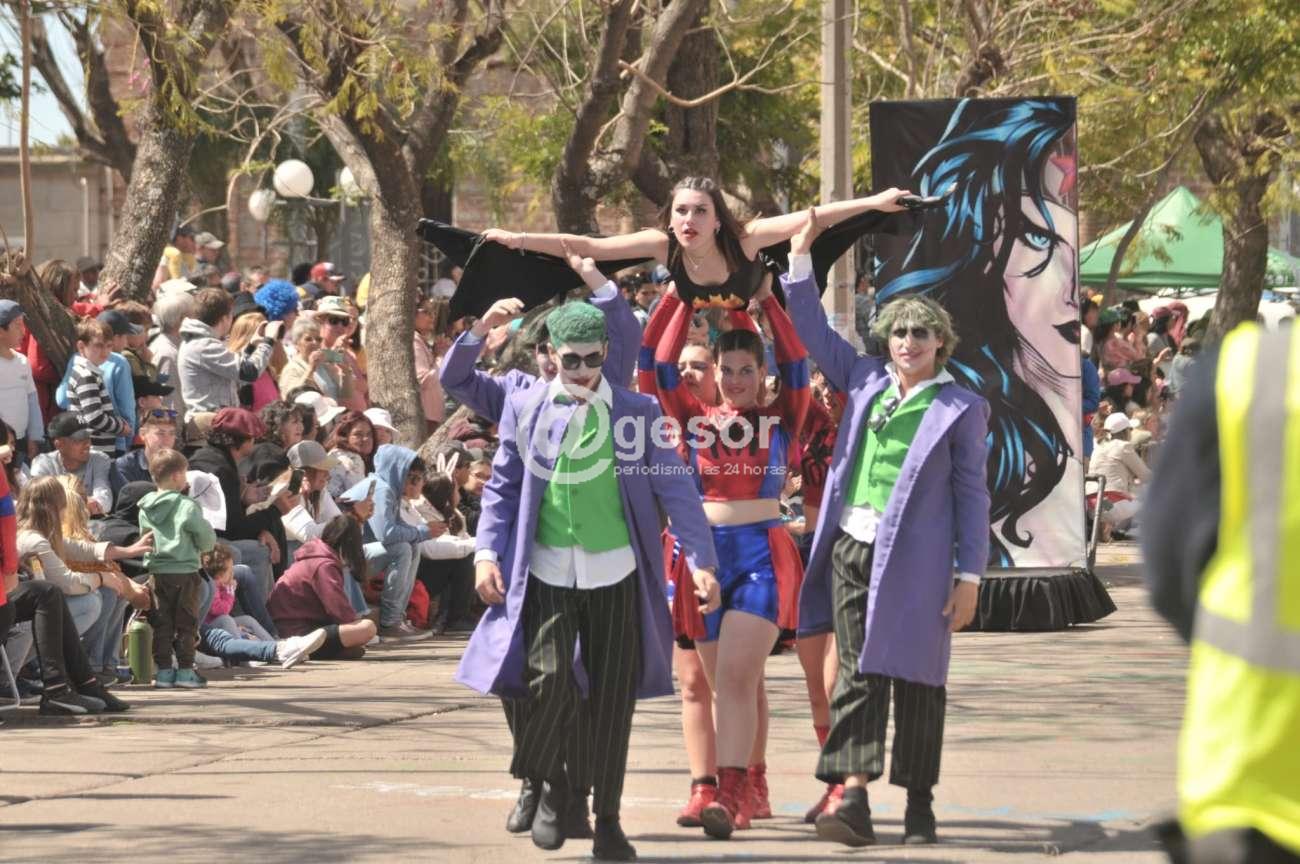 Le sigue la coreografía y luego la carroza principal donde se destacan la Mujer Maravilla en representación de los superhéroes y El Guasón por los Villanos.
