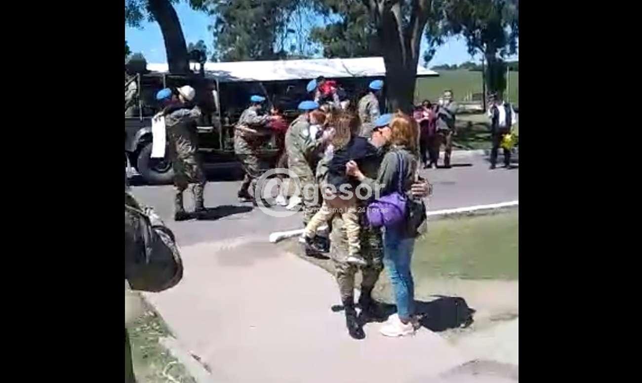 En la mañana de este lunes se vivieron momentos de emoción cuando siete efectivos del Batallón "Asencio" de Infantería Nº 5 de Mercedes que regresaban de misión de paz en Altos del Golán se reencontraron con sus familiares.