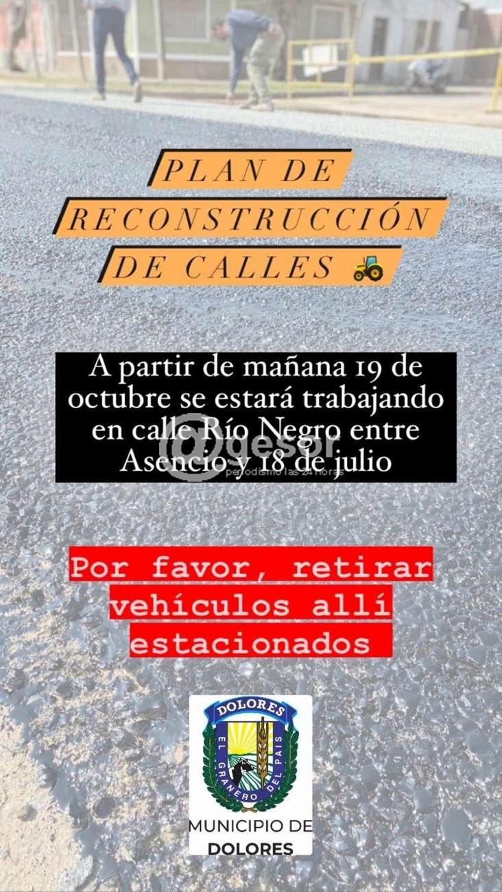 El Municipio de Dolores comunica que a partir de este miércoles 19 lleva adelante el Plan de Reconstrucción de Calles.