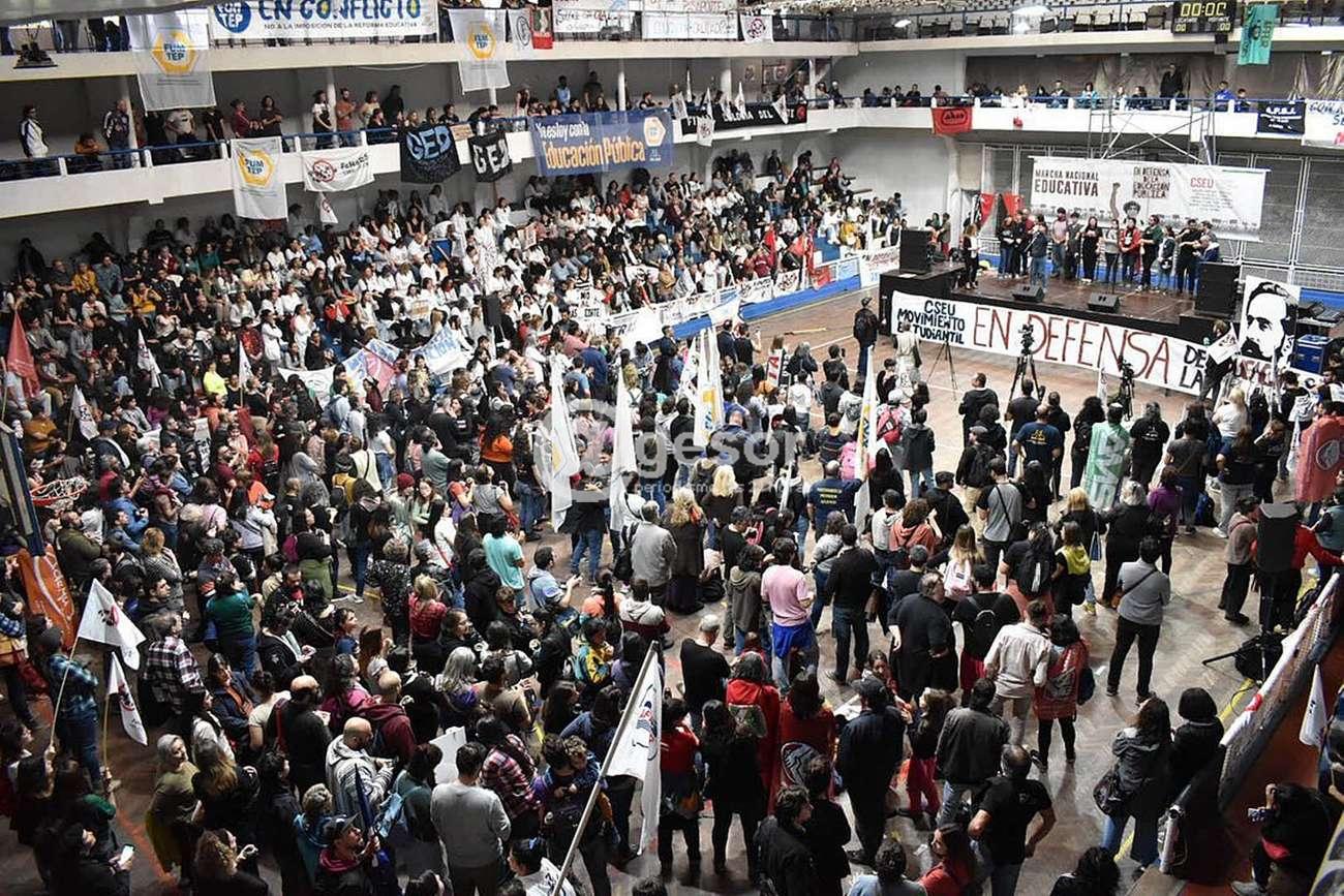 Está desarrollándose el paro con movilización que llevan adelante los diferentes sindicatos de la enseñanza nucleados en la Coordinadora de Sindidatos de la Enseñanza del Uruguay (CSEU) que tuvo su epicentro en acto llevado a cabo en el Platense Patín de Club.