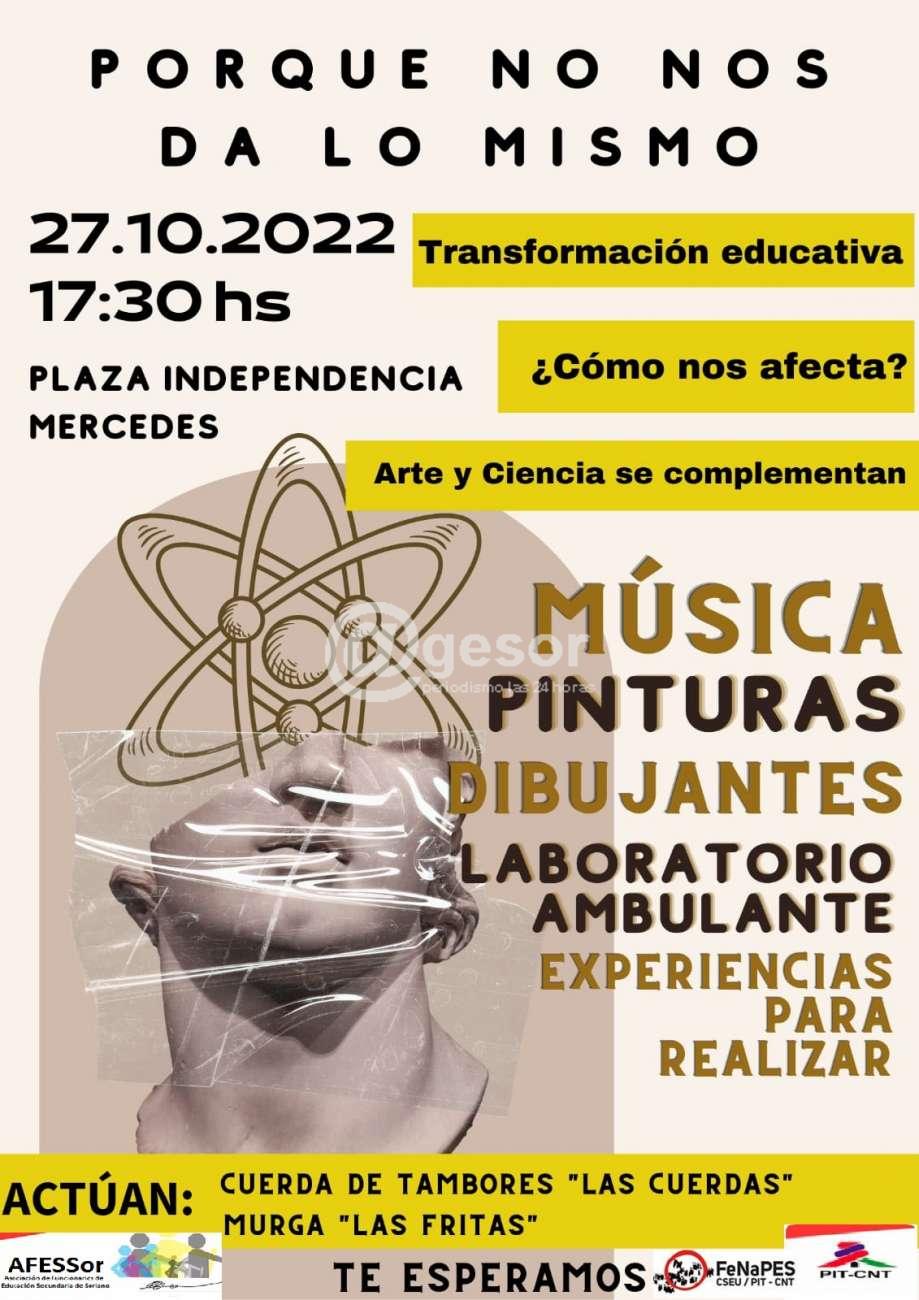 AFESSOR (Asociación de Funcionarios de Educación Secundaria de Soriano) organiza para este jueves una movilización bajo la consigna “Porque no nos da lo mismo”, enmarcándose en las movilizaciones que se vienen realizando a nivel nacional.