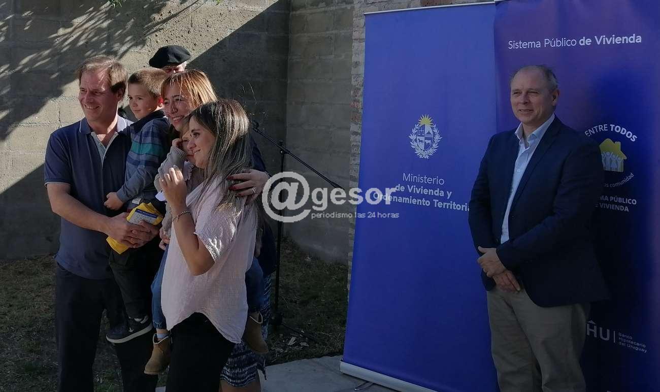 Diez familias recibieron la llave de sus casas en el complejo ubicado en calle Rivas y Galarza de Mercedes. El acto contó con la presencia de la Ministra de Vivienda, Irene Moreira, el subsecretario de la cartera Tabaré Hackembruch, el Cr. Jorge Ceretta, Director Nacional de Vivienda, y el intendente Guillermo Besozzi. Entre el público además estaban los diputados María Fajardo, y Enzo Malán, ediles y las familias de los beneficiarios.