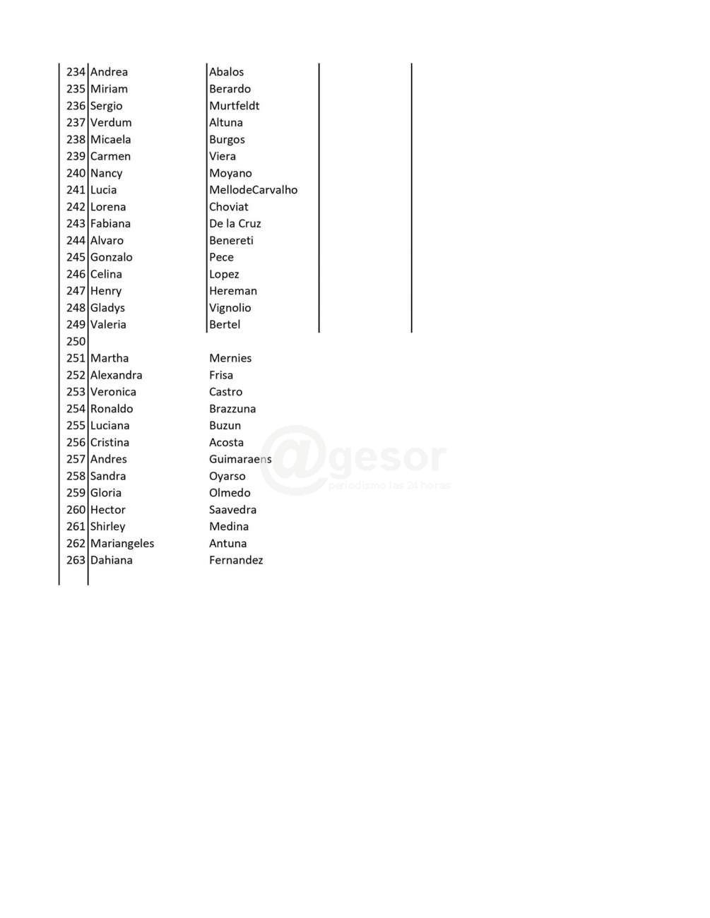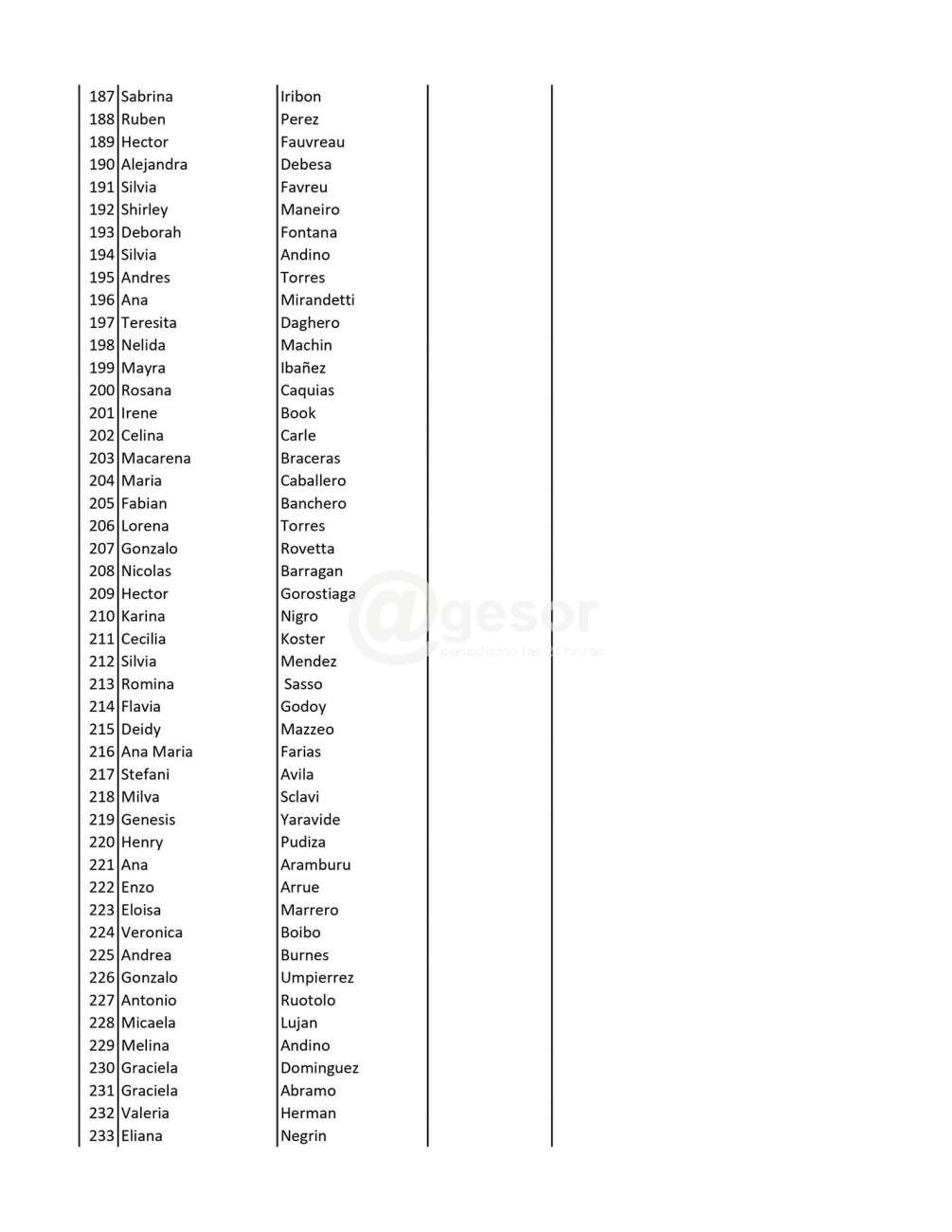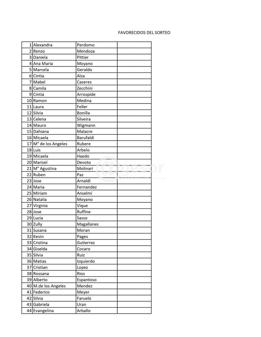 Los primeros 10 seleccionados pueden pasar por oficina de Turismo (Puig esq. Rico Puppo) en Dolores, en el horario de 8.00 a 13.30 horas a fijar los días a vacacionar. Ellos son: 1) Alexandra Perdomo, 2) Renzo Mendoza, 3) Daniela Pittier, 4) Ana María Moyano, 5) Marcela Geraldo, 6) Cintia Alza, 7) Mabel Caseres, 8) Camila Zecchini, 9) Cintia Arrospide, 10) Ramón Medina.