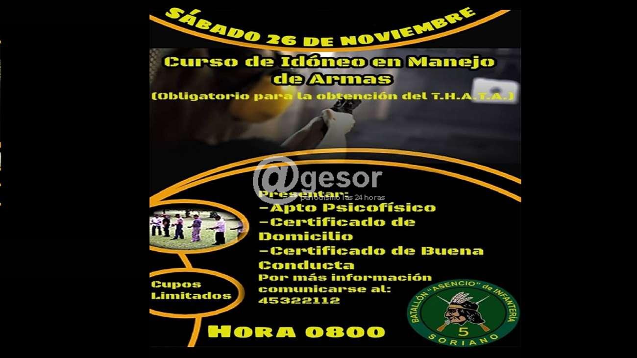 Un nuevo curso de idóneo en manejo de armas se viene organizando para el sábado 26 de noviembre próximo. Se trata de un curso obligatorio para la obtención de THATA.