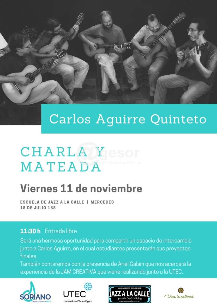 Este viernes 11 de noviembre en la Escuela de Jazz a la Calle (18 de julio Nº 168, Mercedes) se realizará una Charla y mateada. En la invitación se anuncia “será una hermosa oportunidad para compartir un espacio de intercambio junto a Carlos Aguirre, en el cual estudiantes presentarán sus proyectos finales. También contaremos con la presencia de Ariel Galain que nos acercará la experiencia de la JAM CREATIVA que viene realizando junto a UTEC”.