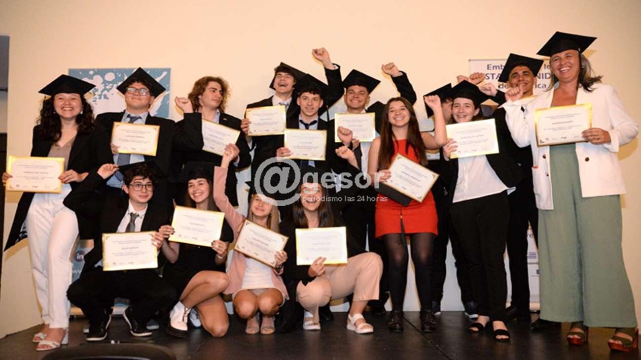 El viernes 4 de noviembre tuvo lugar en el Hotel Esplendor de Montevideo la ceremonia de graduación que cada año pone fin a este programa. En este evento, que contó con la participación de la Consejera Adjunta de Asuntos Públicos de los Estados Unidos en Uruguay, Lauren Holt, los estudiantes presentaron sus proyectos, compartieron sus impresiones y recibieron sus diplomas acompañados por sus familias y amigos. Al hacer uso de la palabra durante la ceremonia de graduación, Holt resaltó: “Este programa no se trata solo de viajar a Estados Unidos, sino de asumir desafíos en sus comunidades y ayudar a crear soluciones. Como jóvenes, ustedes son uno de los principales agentes de cambio en sus comunidades. De ustedes depende cuánto inspirarán a otros con las habilidades que han aprendido en este programa, para construir el futuro”.